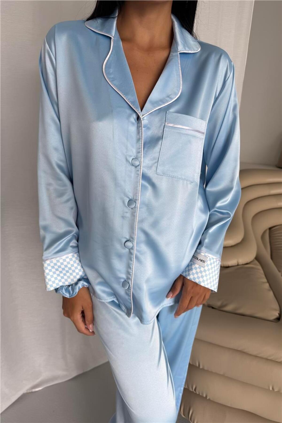 Liscio e Quadri Bebe Mavisi Saten Uzun Pijama Takımı Liscio e Quadri Bebe Mavisi Saten Uzun Pijama Takımı 1520 XL