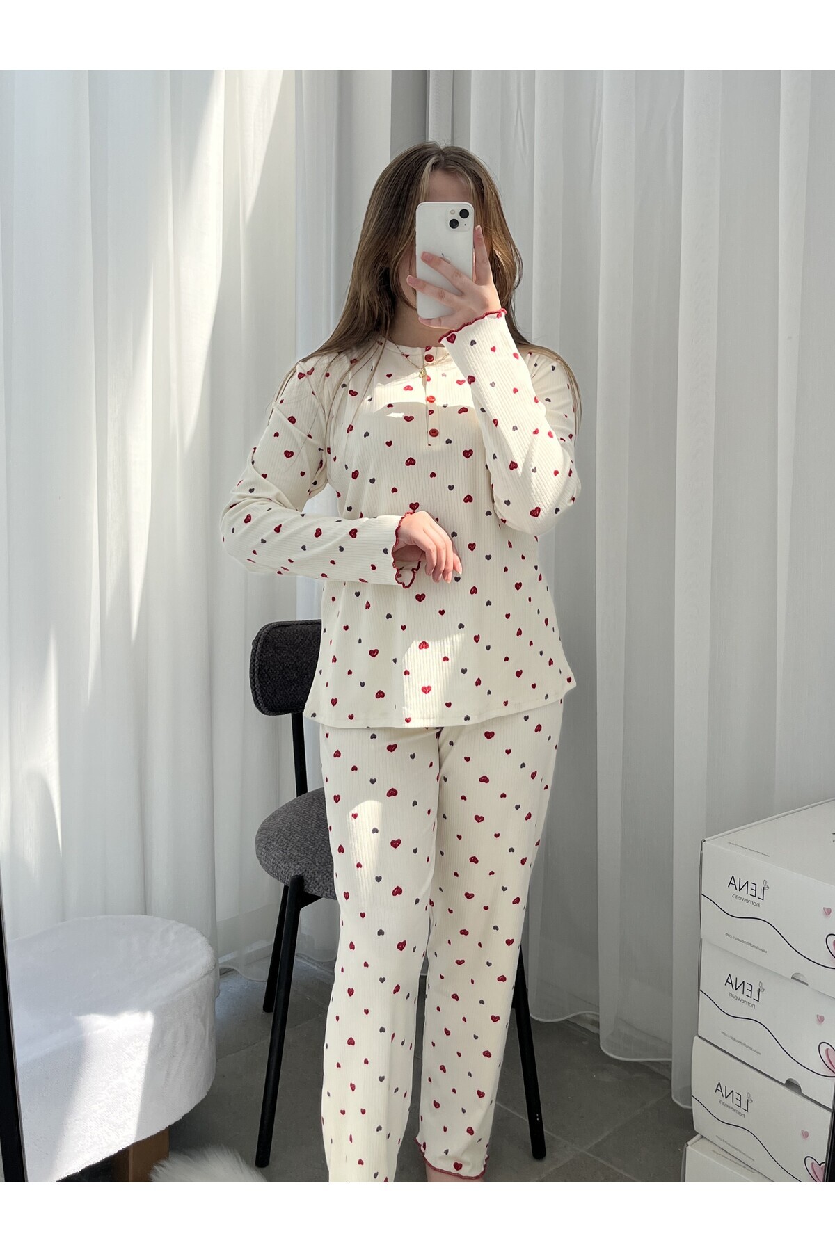 Kırmızı Kalp Desenli Ekru Berlin Pijama Takımı Kırmızı Kalp Desenli Ekru Berlin Pijama Takımı 2014 2XL