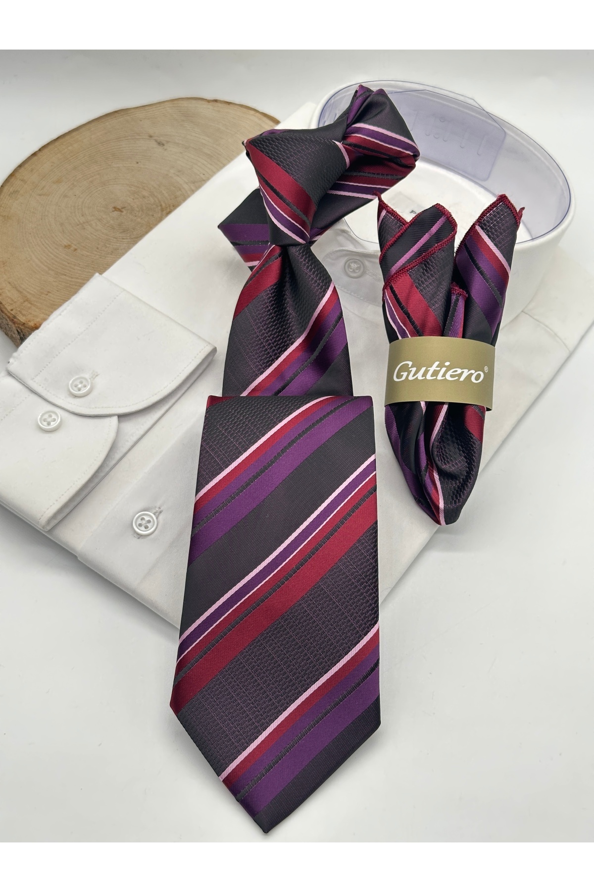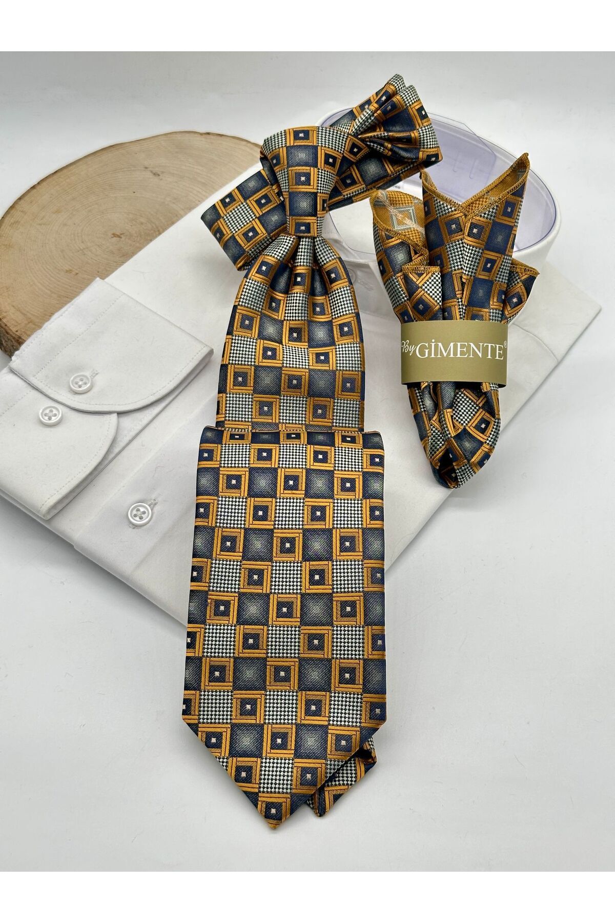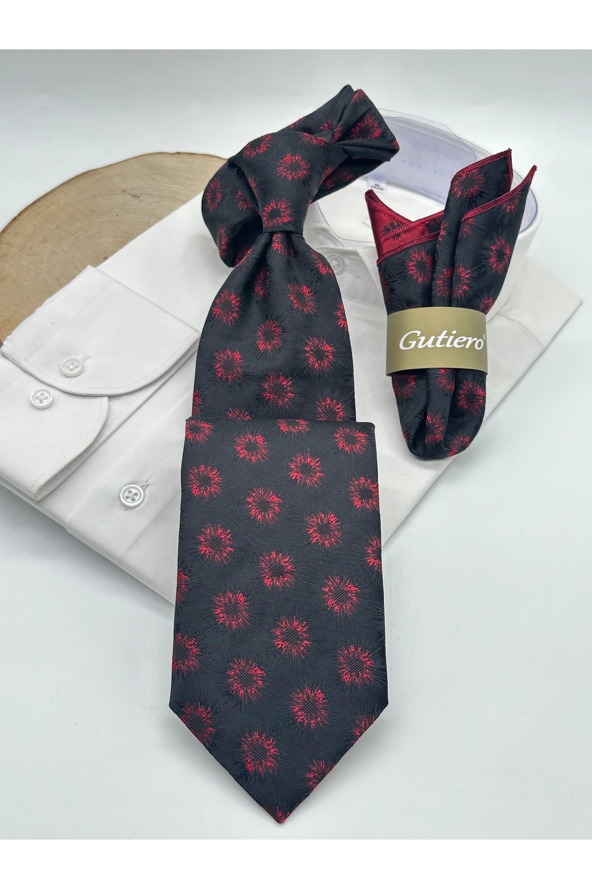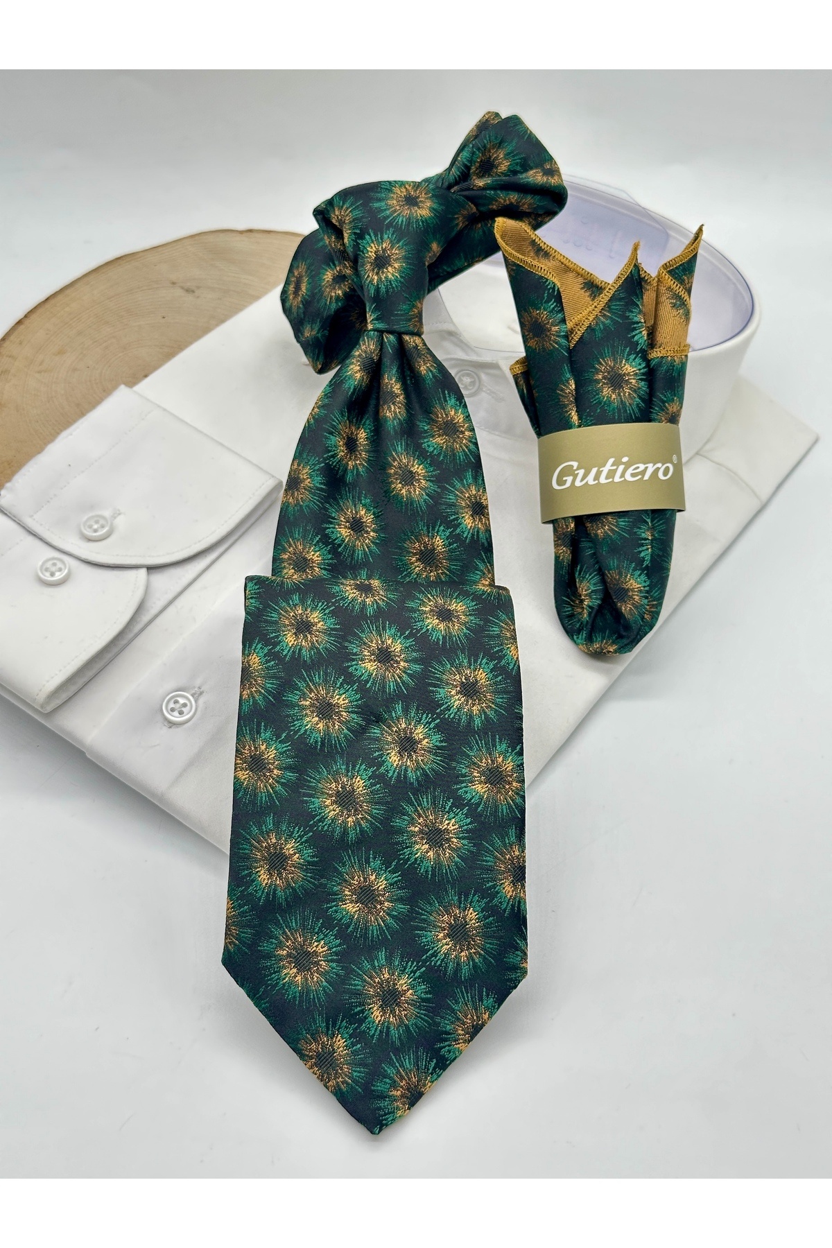 Turkuaz Desenli Mendilli Klasik Kravat Turkuaz Desenli Mendilli Klasik Kravat KK7-621 تک سایز