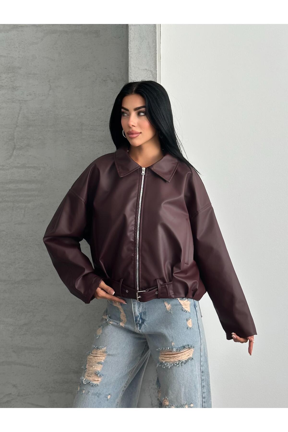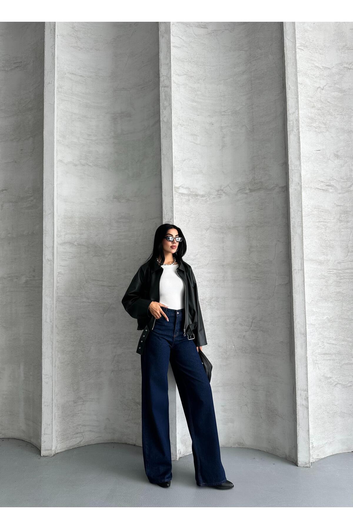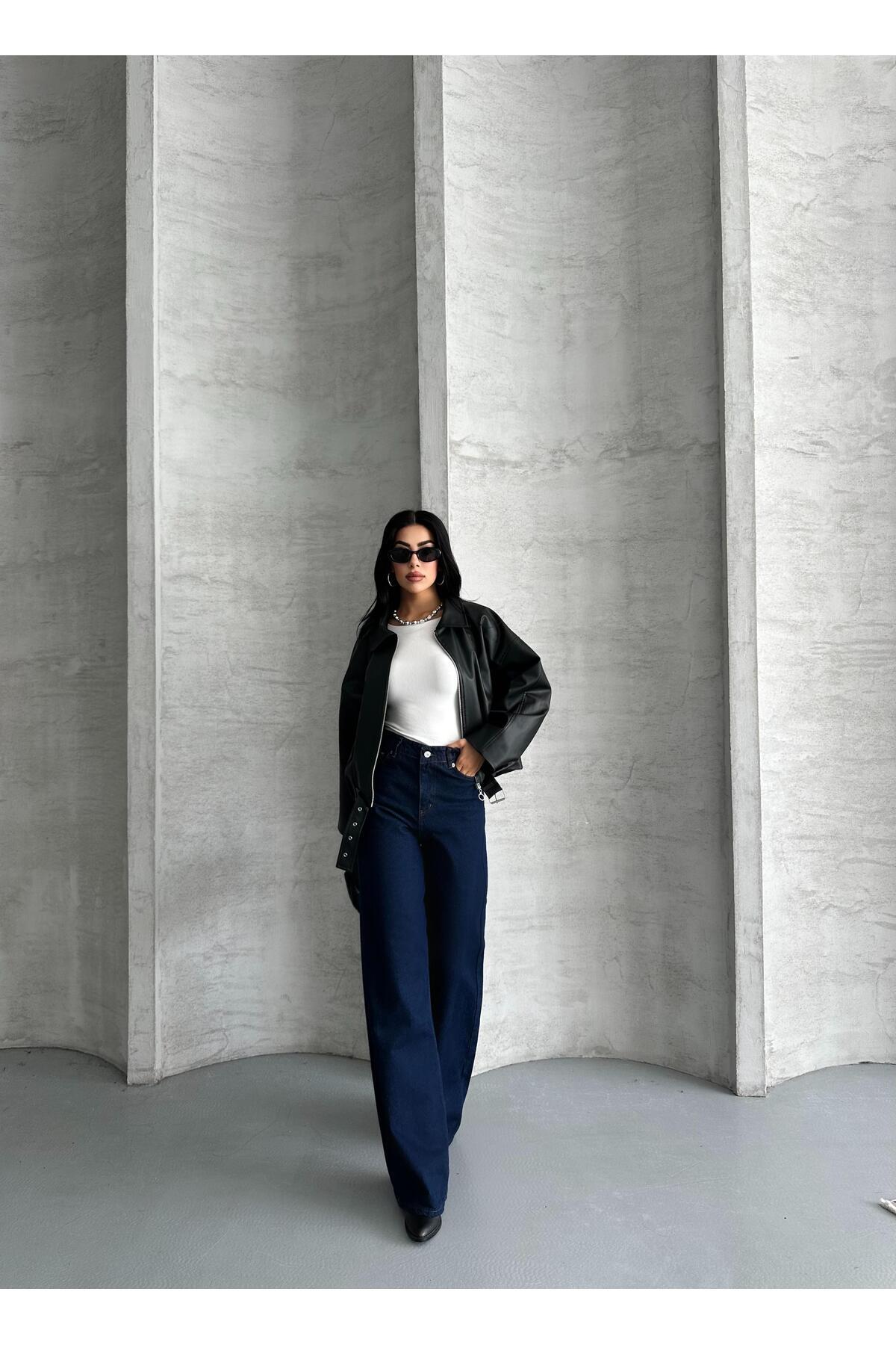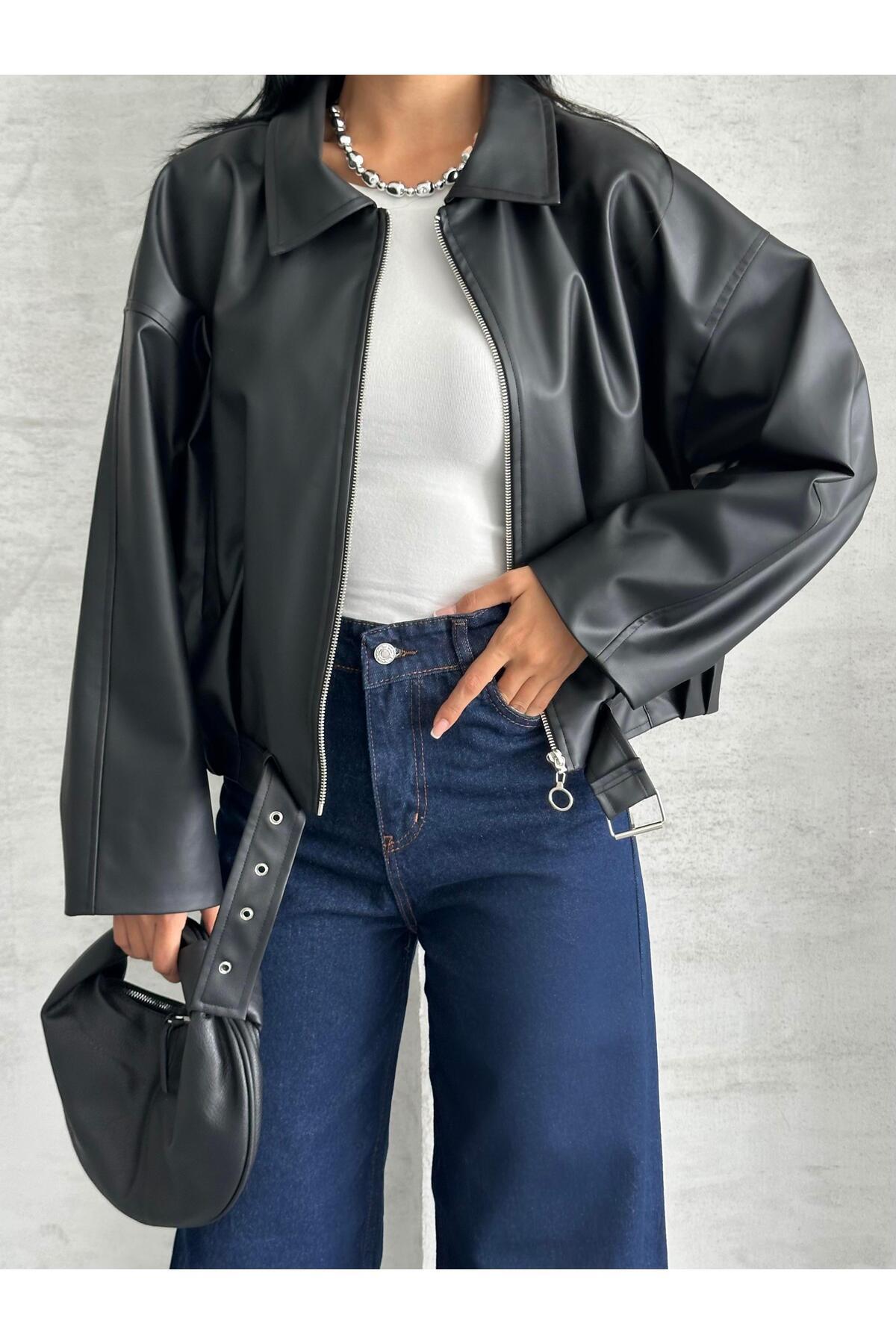 Yakalı Siyah Deri Ceket Yakalı Siyah Deri Ceket MA260063 L