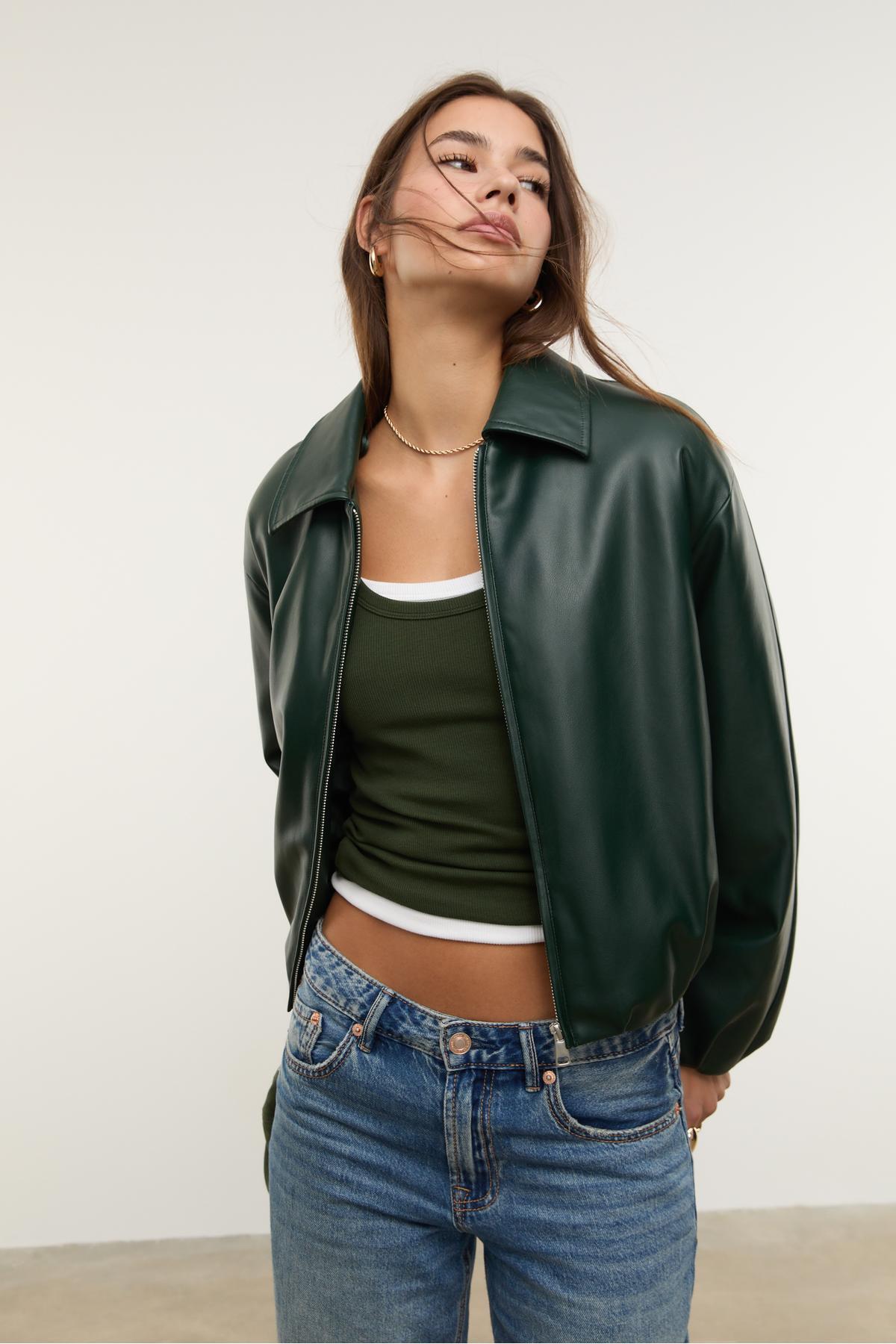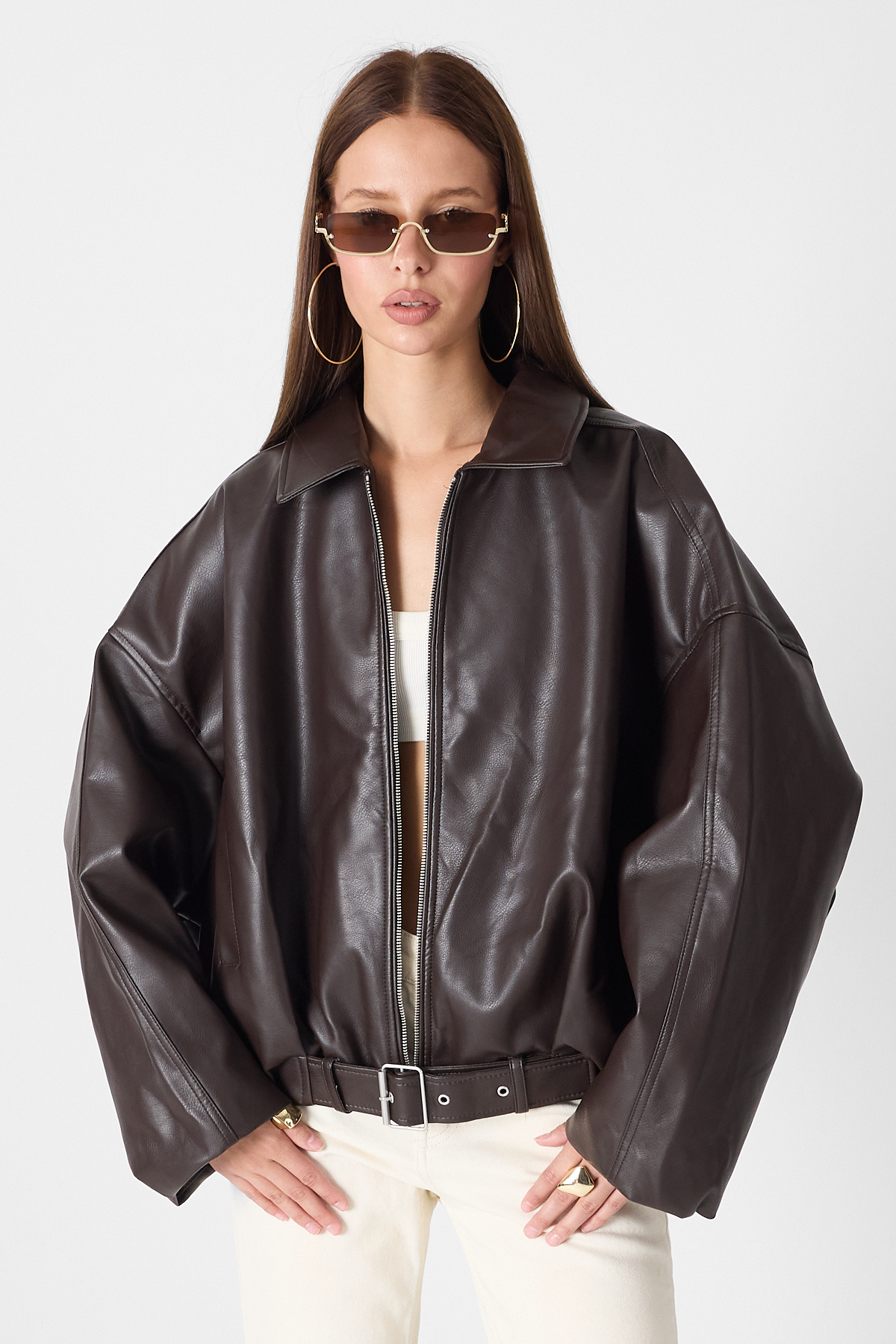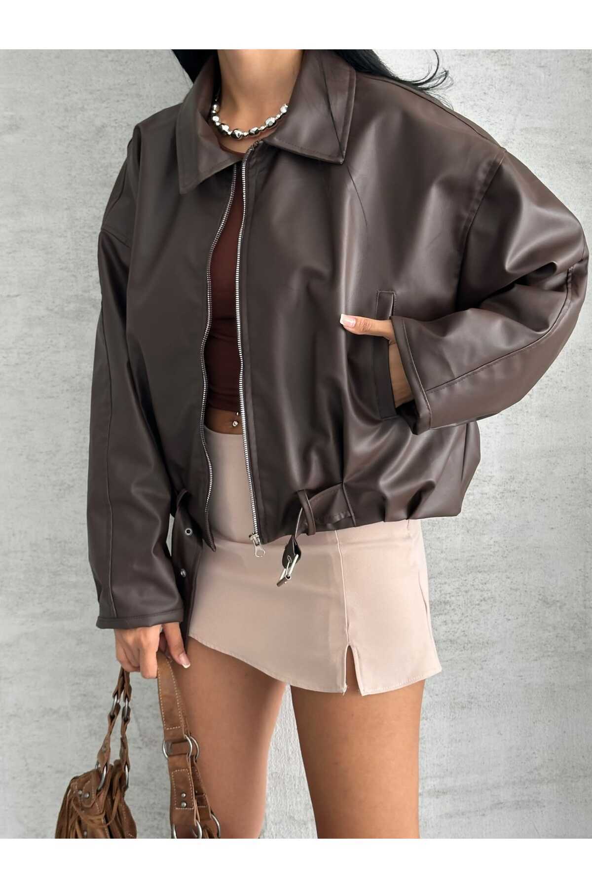 Yakalı Bordo Deri Ceket Yakalı Bordo Deri Ceket MA260063 L