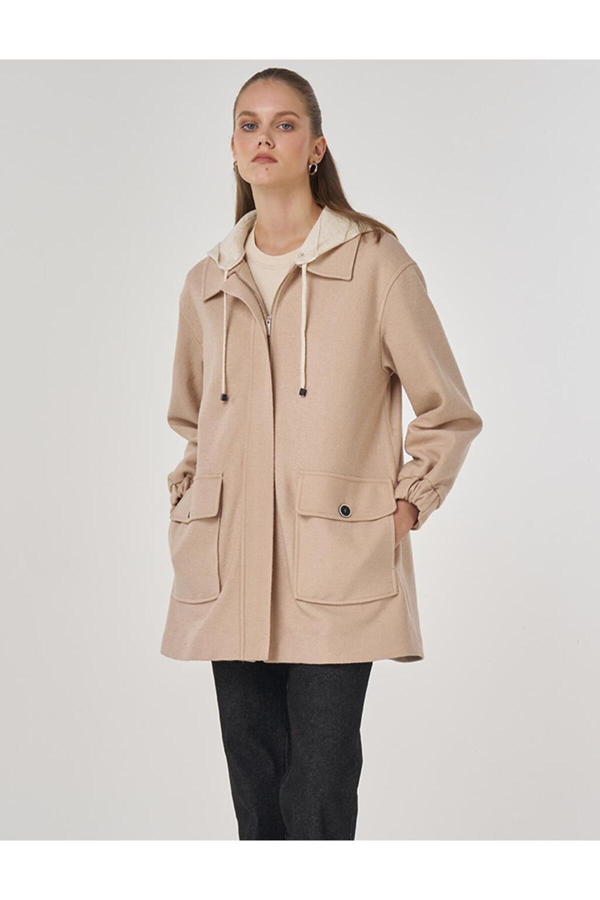 Beli Lastikli Dik Yaka Ceket Krem Beli Lastikli Dik Yaka Ceket Krem KA-A25-13047 50