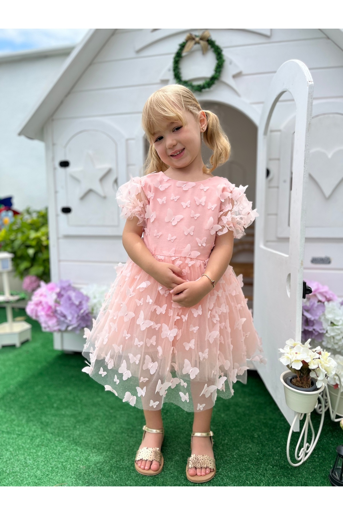 Kız Çocuk Pileli 3 Boyutlu Kelebekli Elbise - KOZA Kız Çocuk Pileli 3 Boyutlu Kelebekli Elbise - KOZA 001004 6-7 Yaş