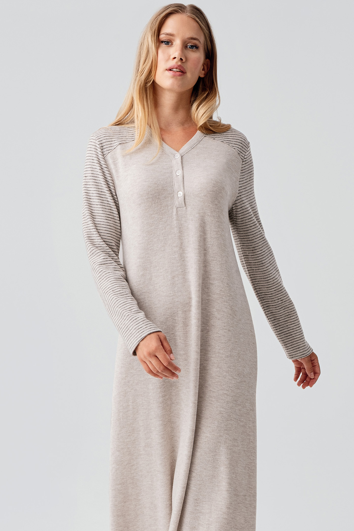 Uzun Kollu Düğmeli Esnek Yumuşak Dokulu Viskoz Gecelik Uzun Kollu Düğmeli Esnek Yumuşak Dokulu Viskoz Gecelik 18103 2XL