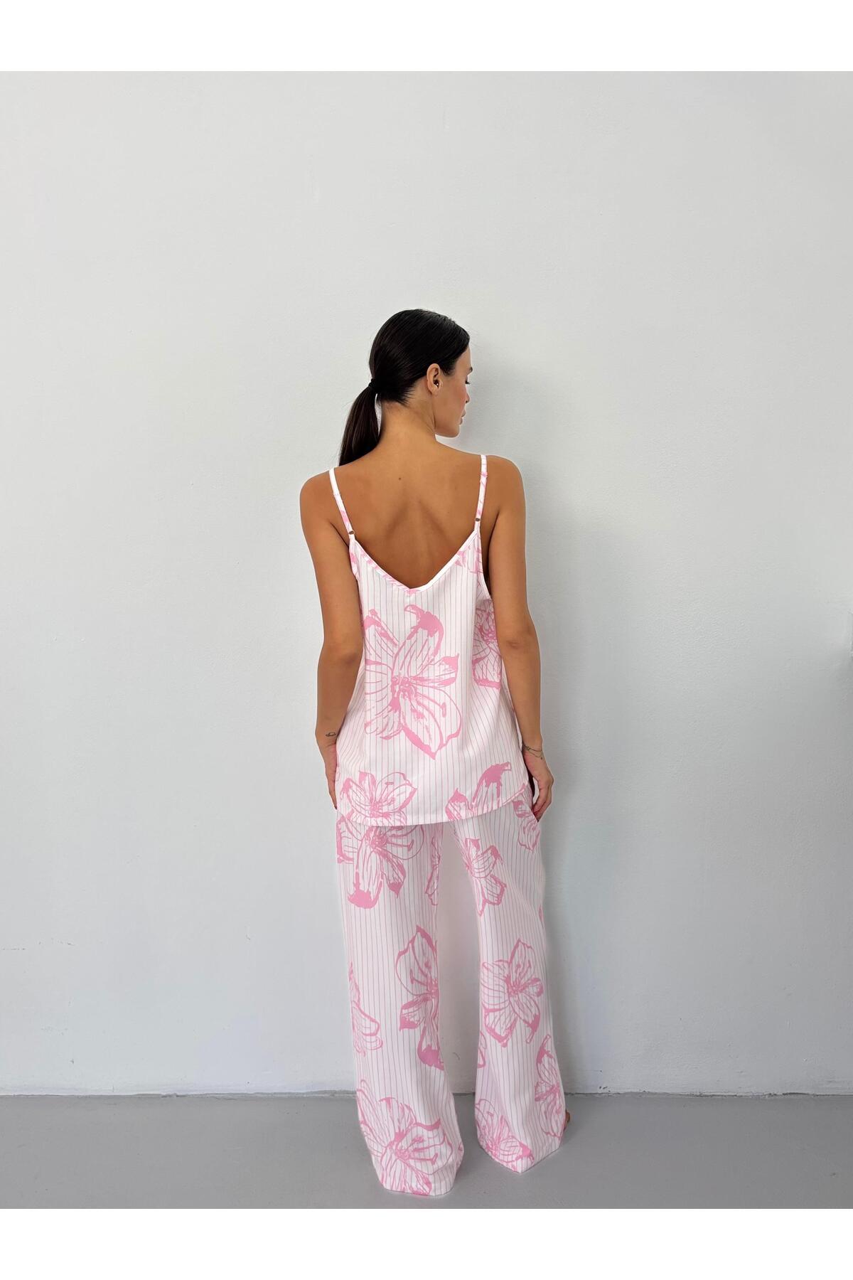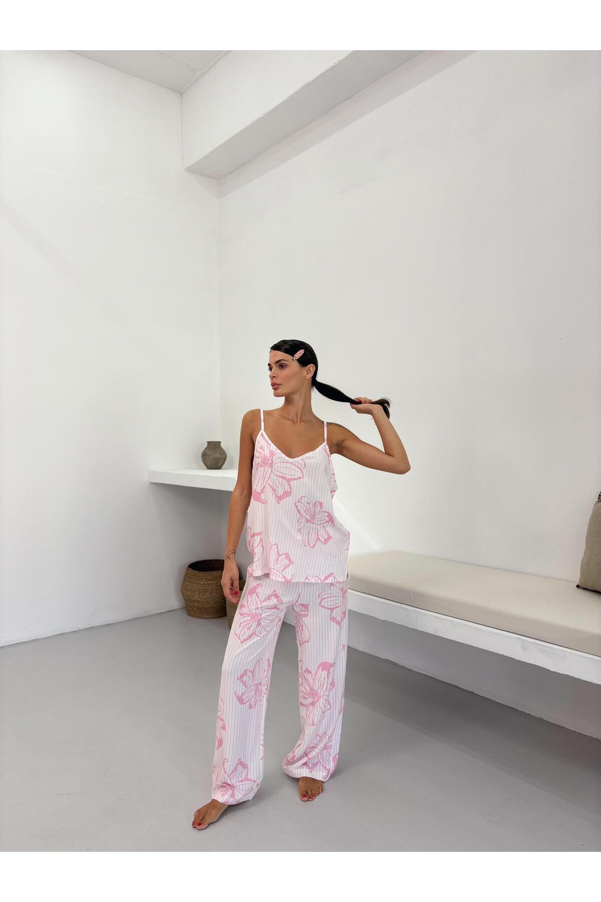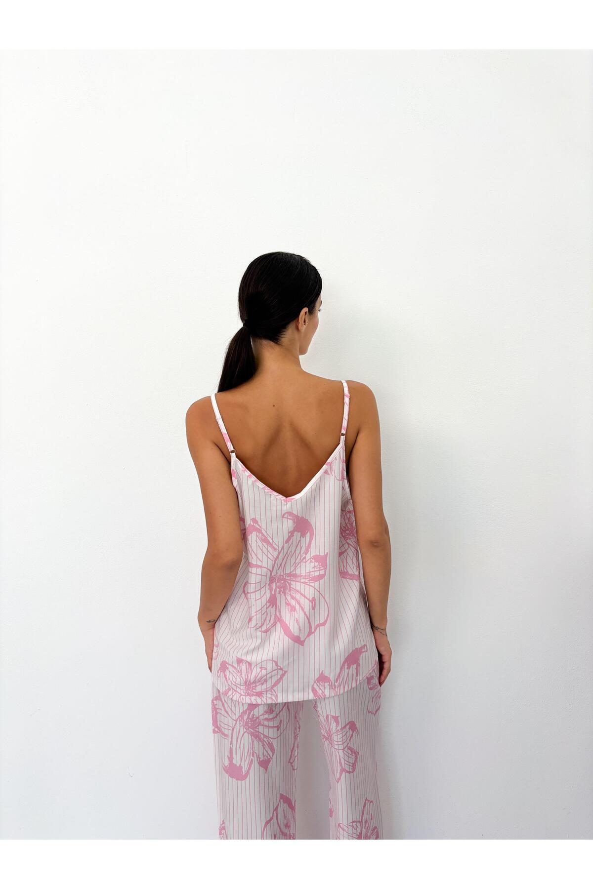 Pembe Çiçek Desen Ayarlanabilir Askı Pamuklu Atlet Pembe Çiçek Desen Ayarlanabilir Askı Pamuklu Atlet PJS-0002-PMB S