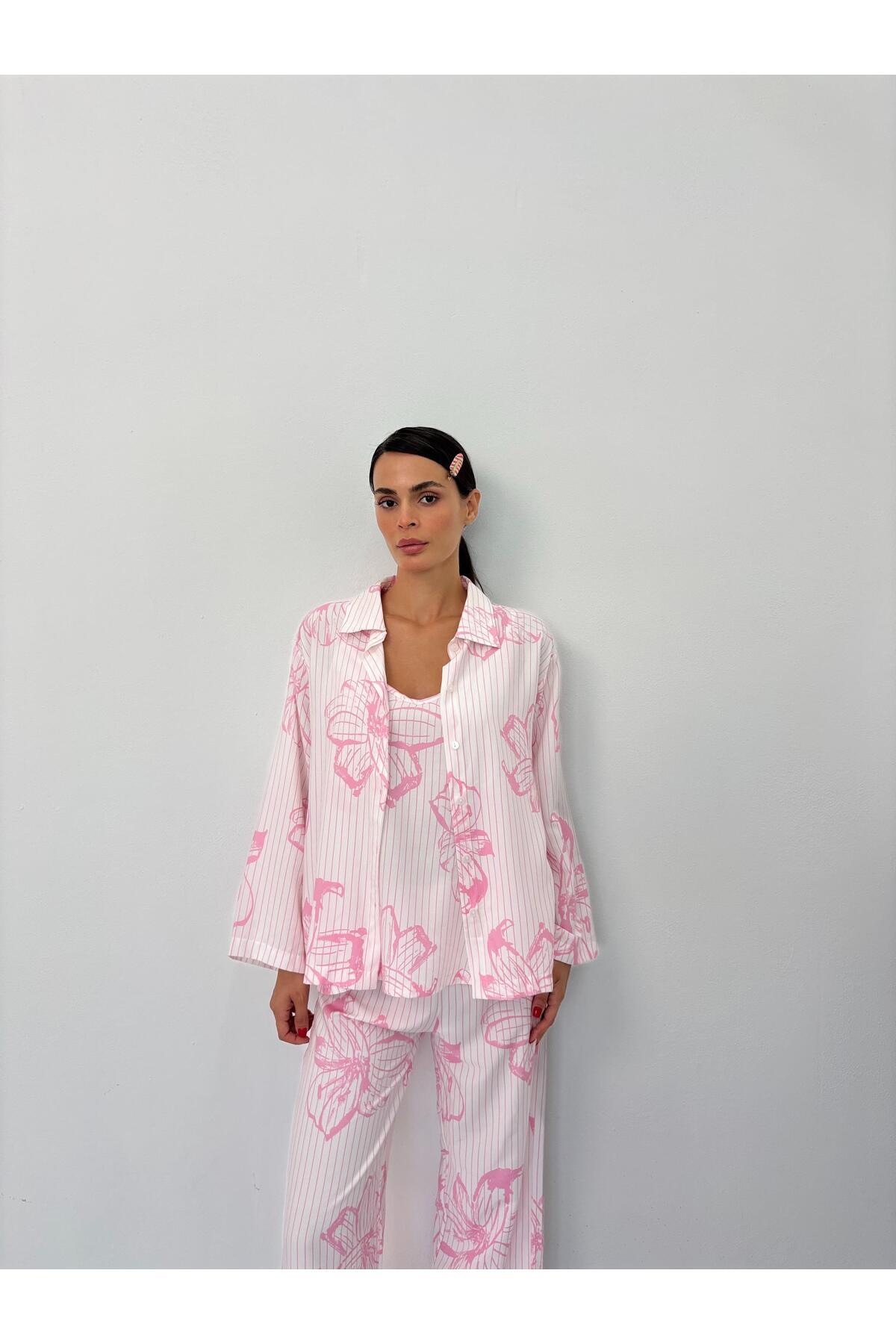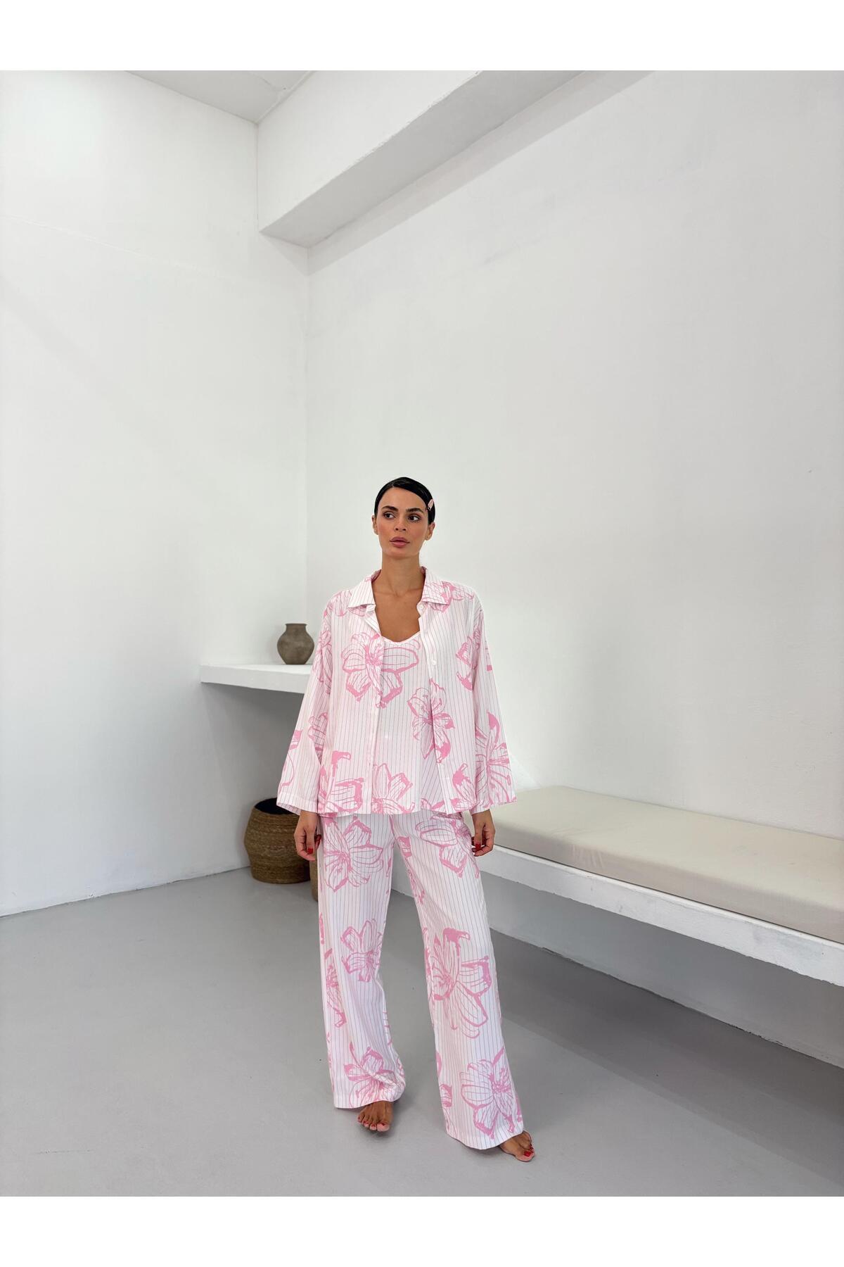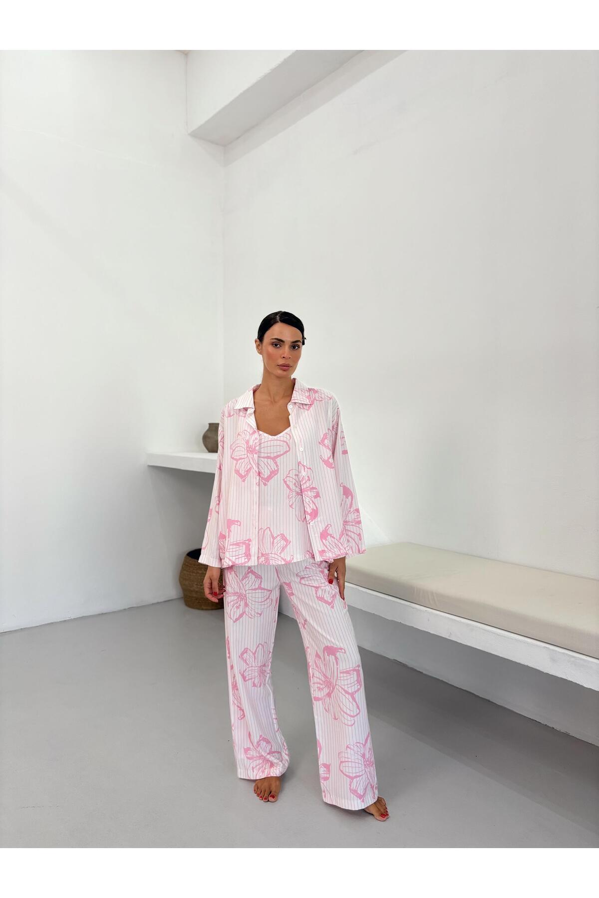 Pembe Çiçek Desen Ayarlanabilir Askı Pamuklu Atlet Pembe Çiçek Desen Ayarlanabilir Askı Pamuklu Atlet PJS-0002-PMB S