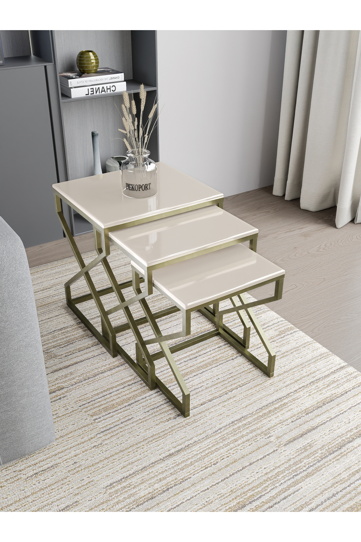 Ela 3lü Zigon Sehpa Yan Sehpa Pirinç Eskitme Renk Metal, Krem MDF Membran Kaplama Tabla Ela 3lü Zigon Sehpa Yan Sehpa Pirinç Eskitme Renk Metal, Krem MDF Membran Kaplama Tabla elazigon001 تک سایز