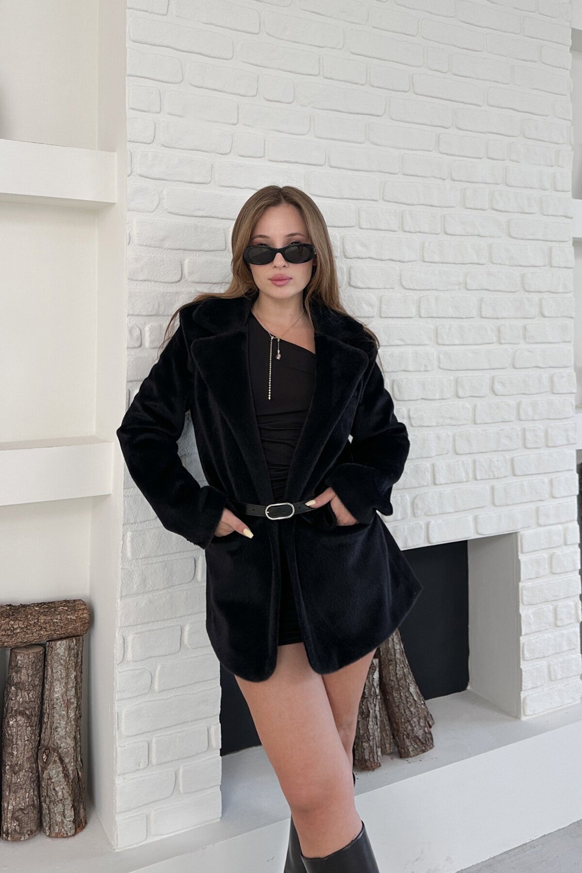 Kadın Bej Tokalı Kemerli Yumuşak Dokulu Kürk Görünümlü Ceket Vs00885 Kadın Bej Tokalı Kemerli Yumuşak Dokulu Kürk Görünümlü Ceket Vs00885 VS00885 XL