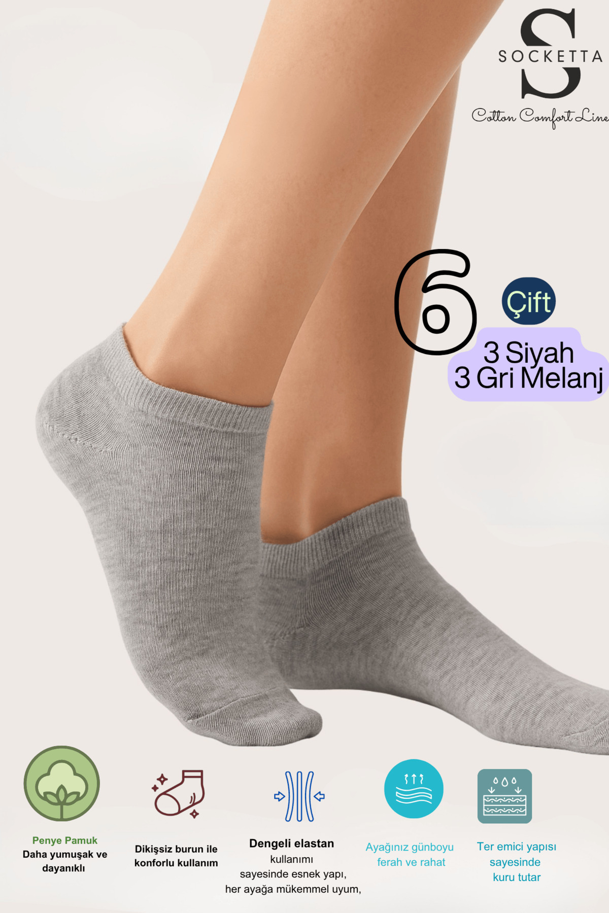 Kadın Pamuklu Likralı Dikişsiz 6'lı Karışık Renk Patik Çorap – Premium Kadın Pamuklu Likralı Dikişsiz 6'lı Karışık Renk Patik Çorap – Premium 22250 35-39