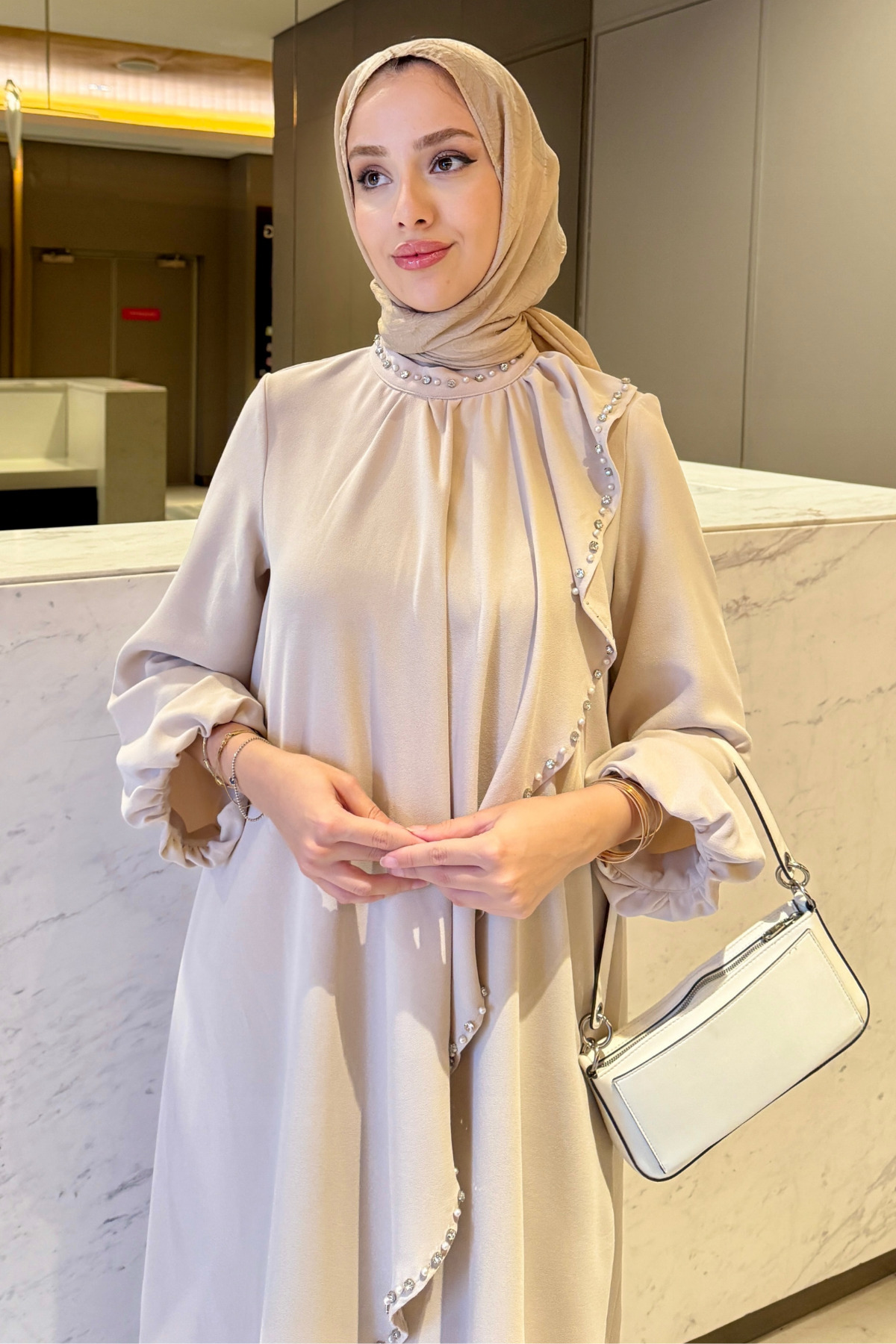 Kadın Krep Kumaş Kenarları Taş İşlemeli Nazende Tesettür Elbise Kadın Krep Kumaş Kenarları Taş İşlemeli Nazende Tesettür Elbise TD156 48