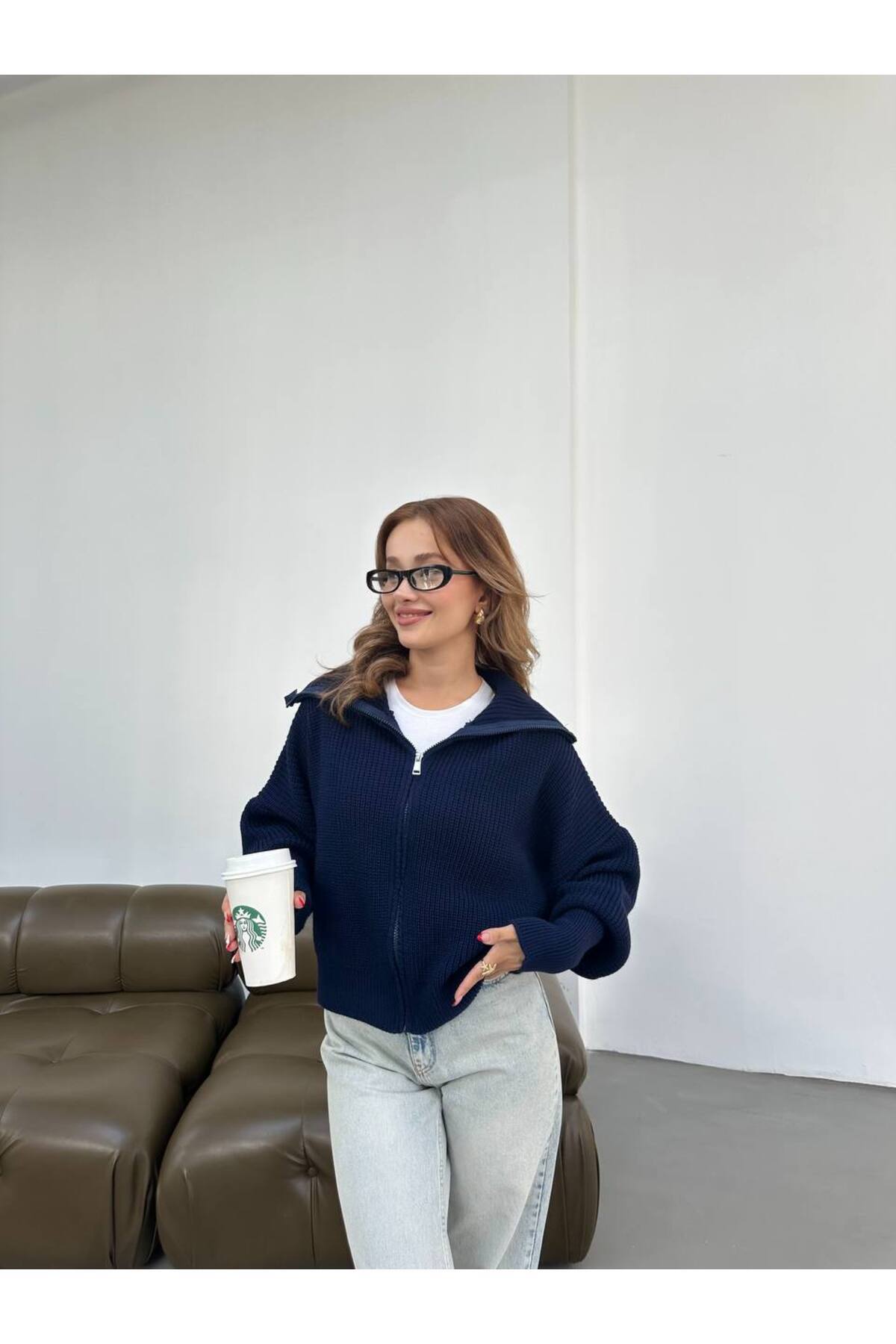 Selanik Detaylı Fermuarlı Kadın Triko Hırka Selanik Detaylı Fermuarlı Kadın Triko Hırka R5250 Standart