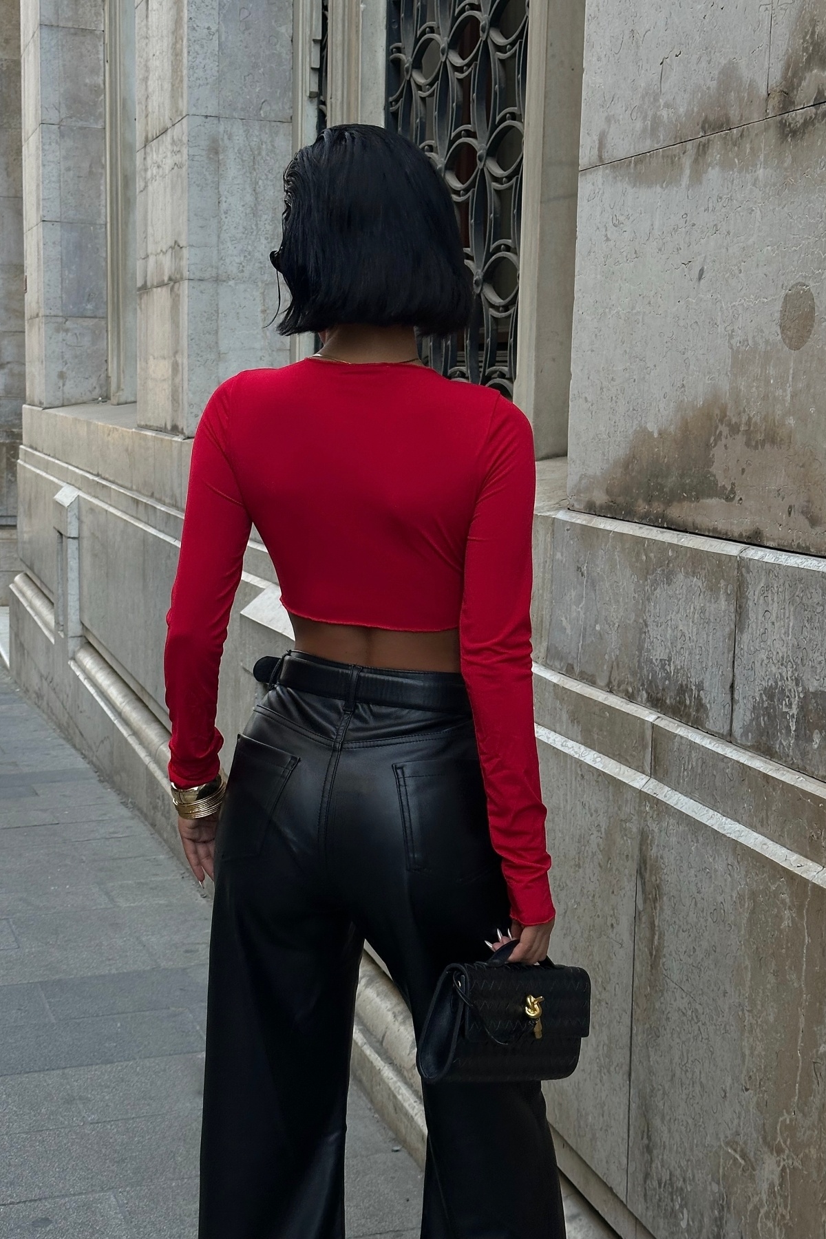 2418 KIRMIZI Bisiklet Yaka Crop 2418 KIRMIZI Bisiklet Yaka Crop L
