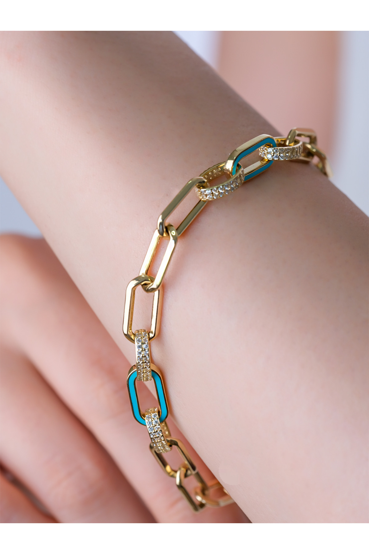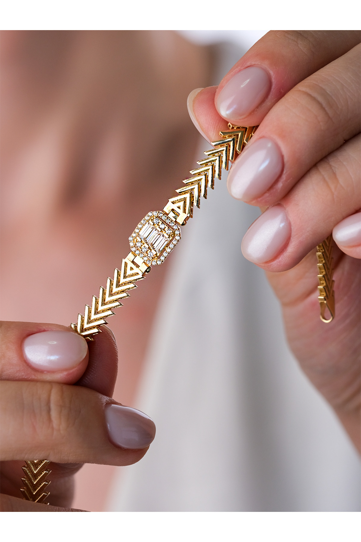 14 Ayar Altın Baget Taşlı Balık Sırtı Bileklik 14 Ayar Altın Baget Taşlı Balık Sırtı Bileklik 53 19 cm