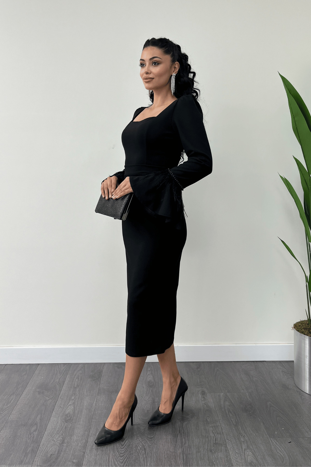 Otriş Detaylı Kare Yaka Kalem Elbise - SİYAH Otriş Detaylı Kare Yaka Kalem Elbise - SİYAH GYM-06139 50