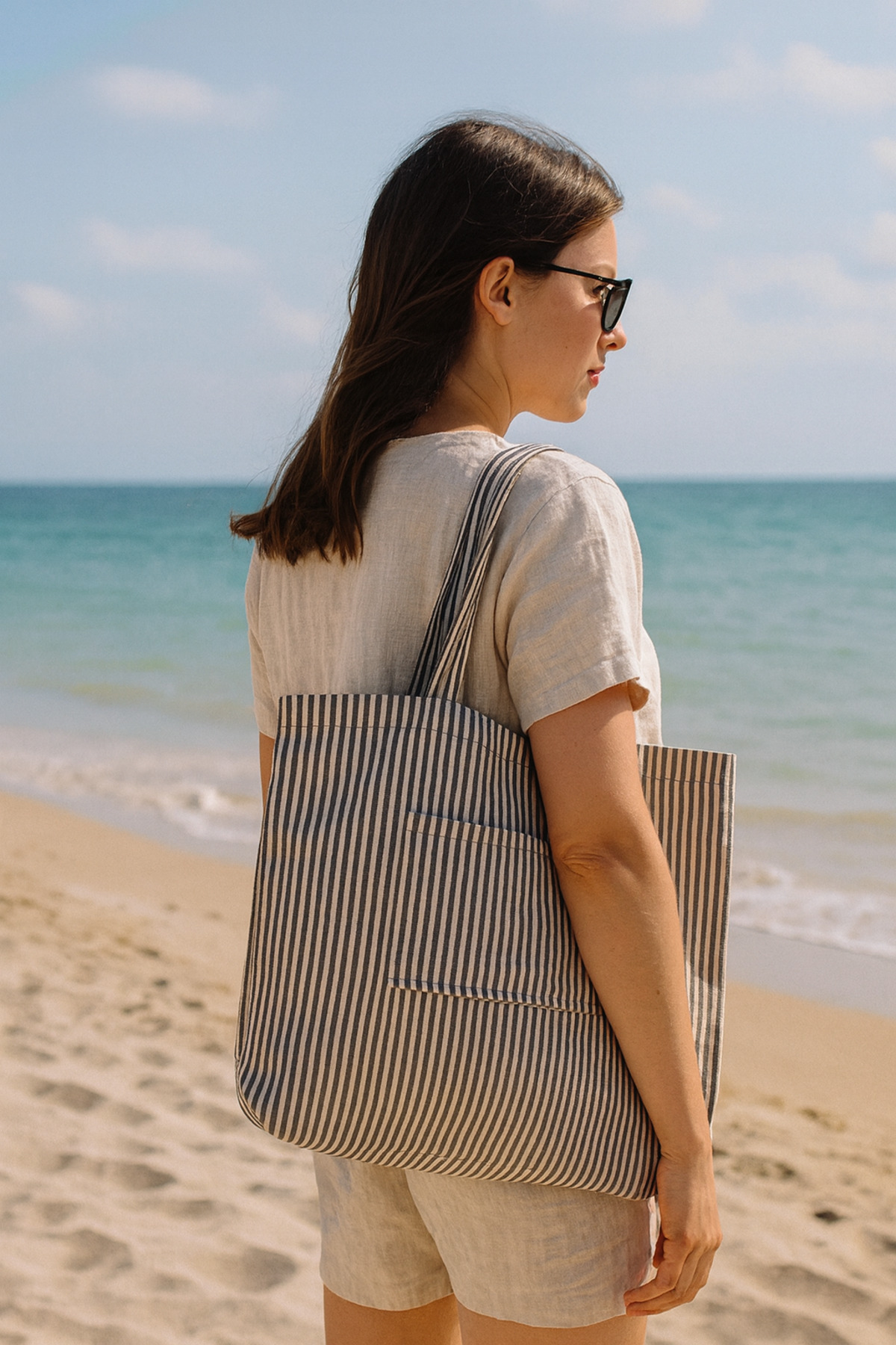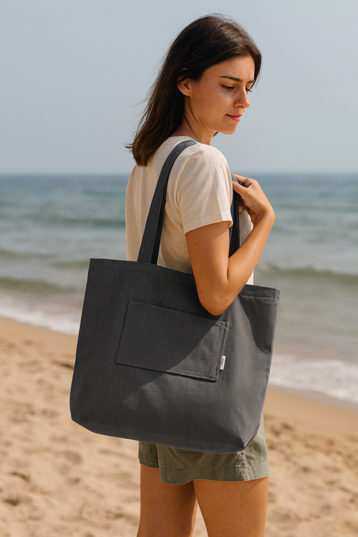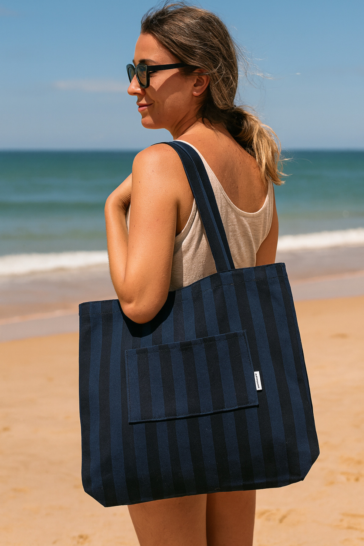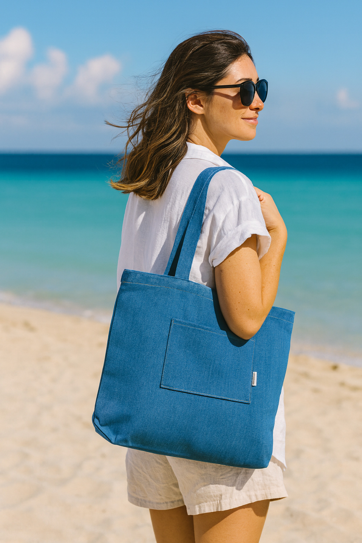 İndigo Denim Kumaş Unisex Cepli Bez Plaj Çantası İndigo Denim Kumaş Unisex Cepli Bez Plaj Çantası BEA100 تک سایز