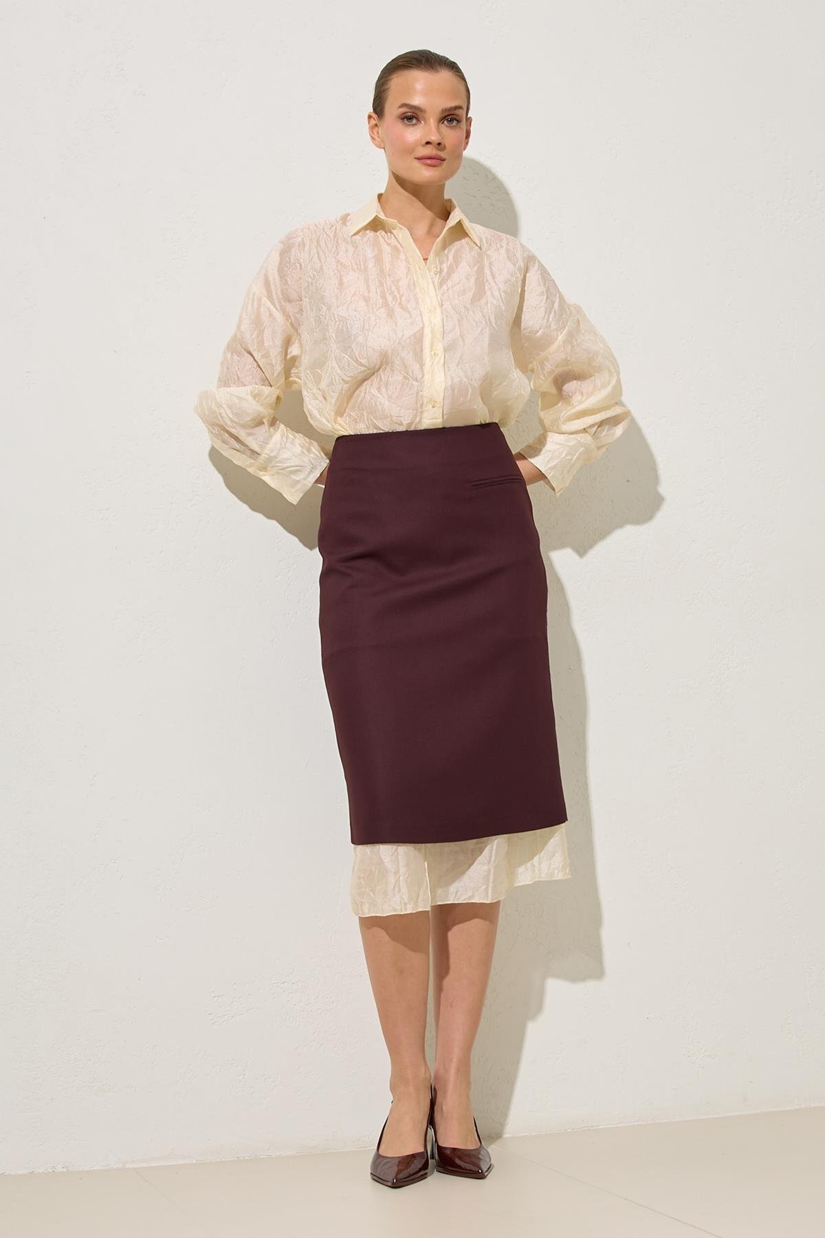 Bordo Cep Detaylı Tam Kalıp Midi Boy Etek Bordo Cep Detaylı Tam Kalıp Midi Boy Etek ST20250W5056201 XL