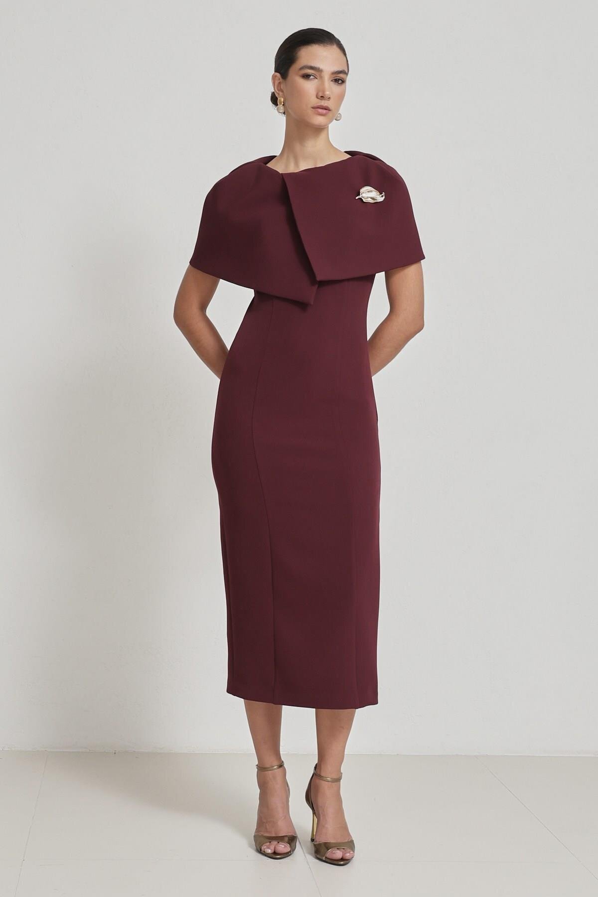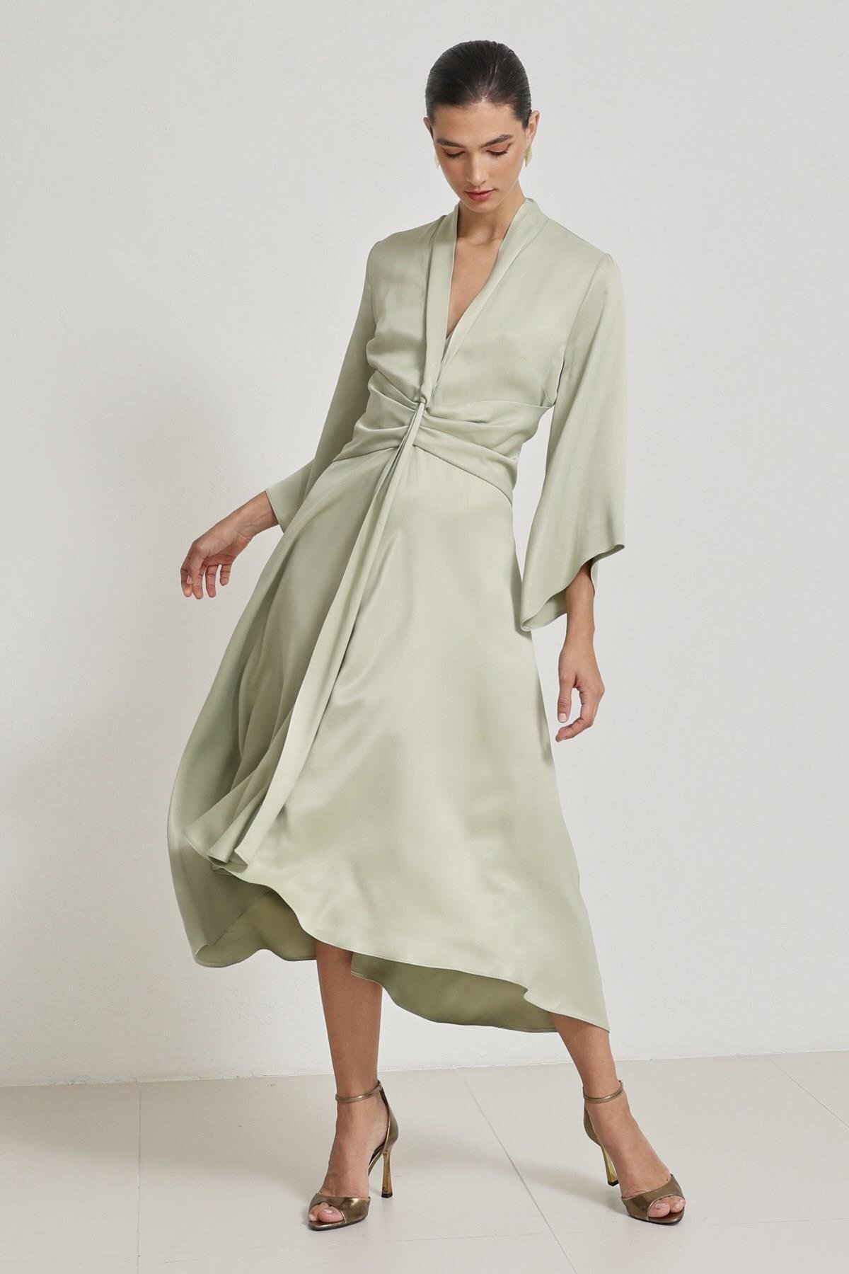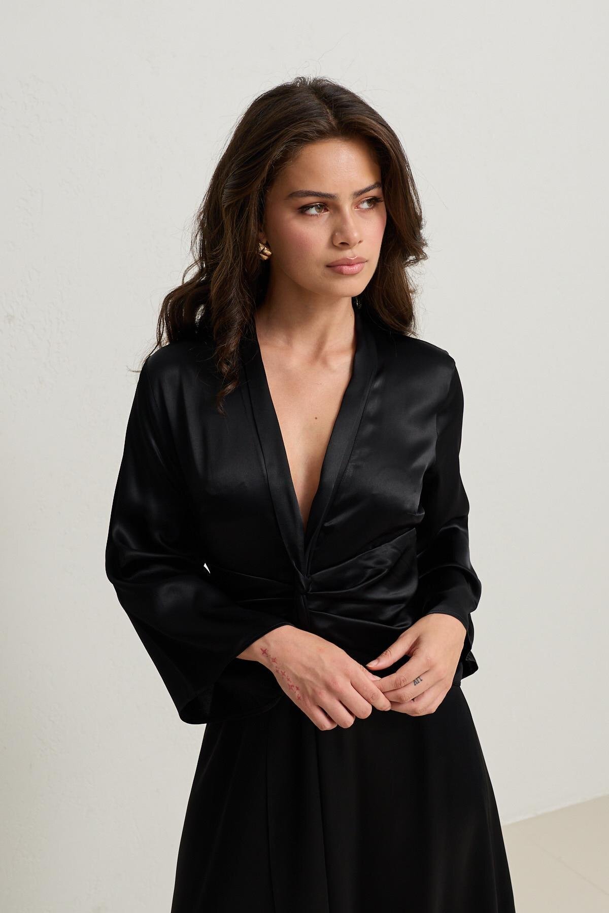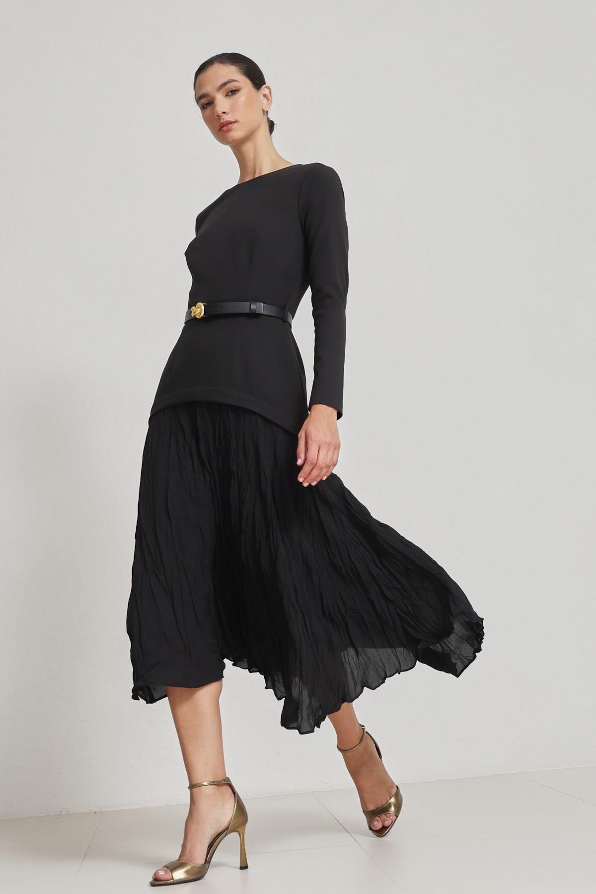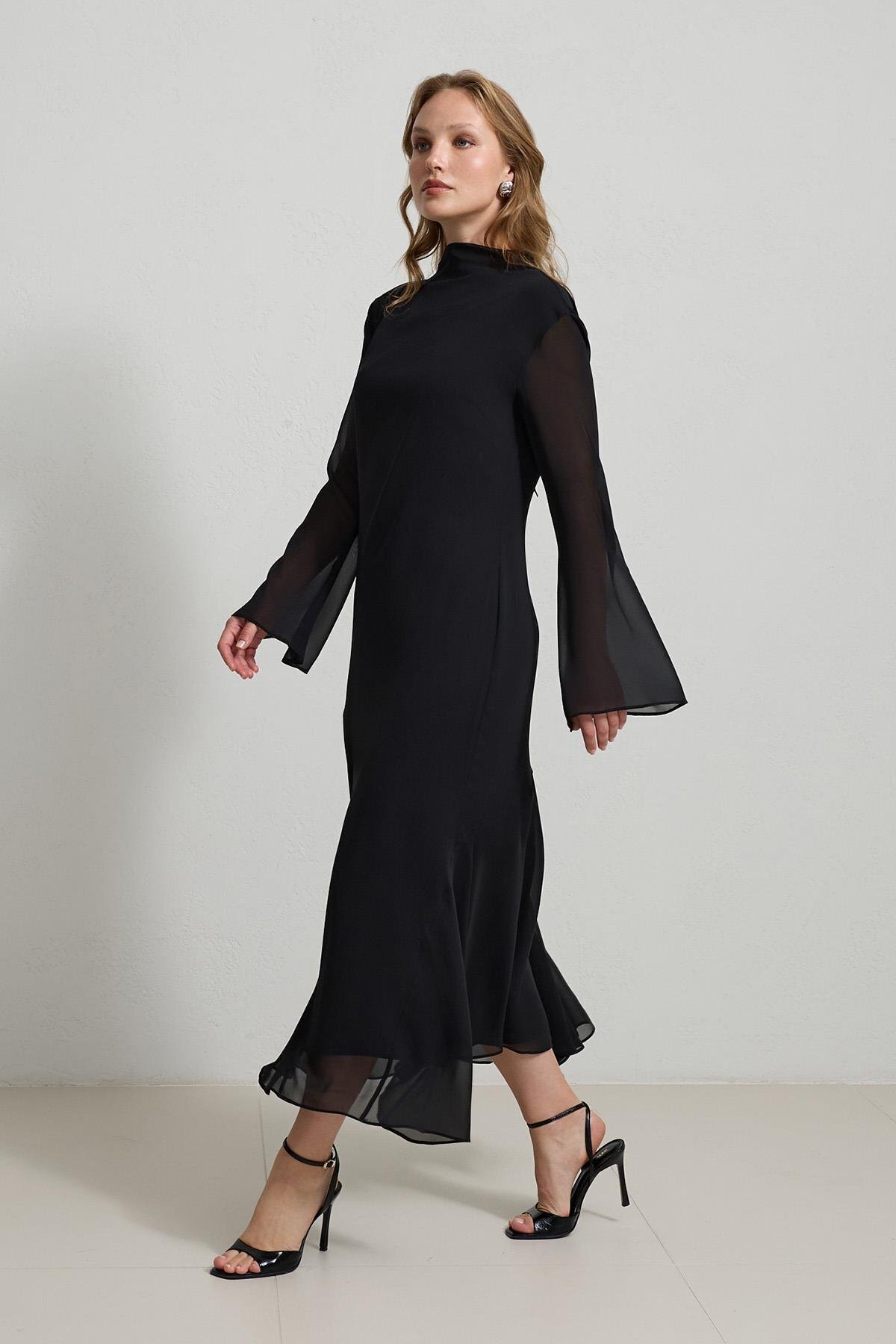 Siyah V Yaka Bel Ve Kol Detaylı Midi Boy Elbise Siyah V Yaka Bel Ve Kol Detaylı Midi Boy Elbise ST20250W40335302 XL