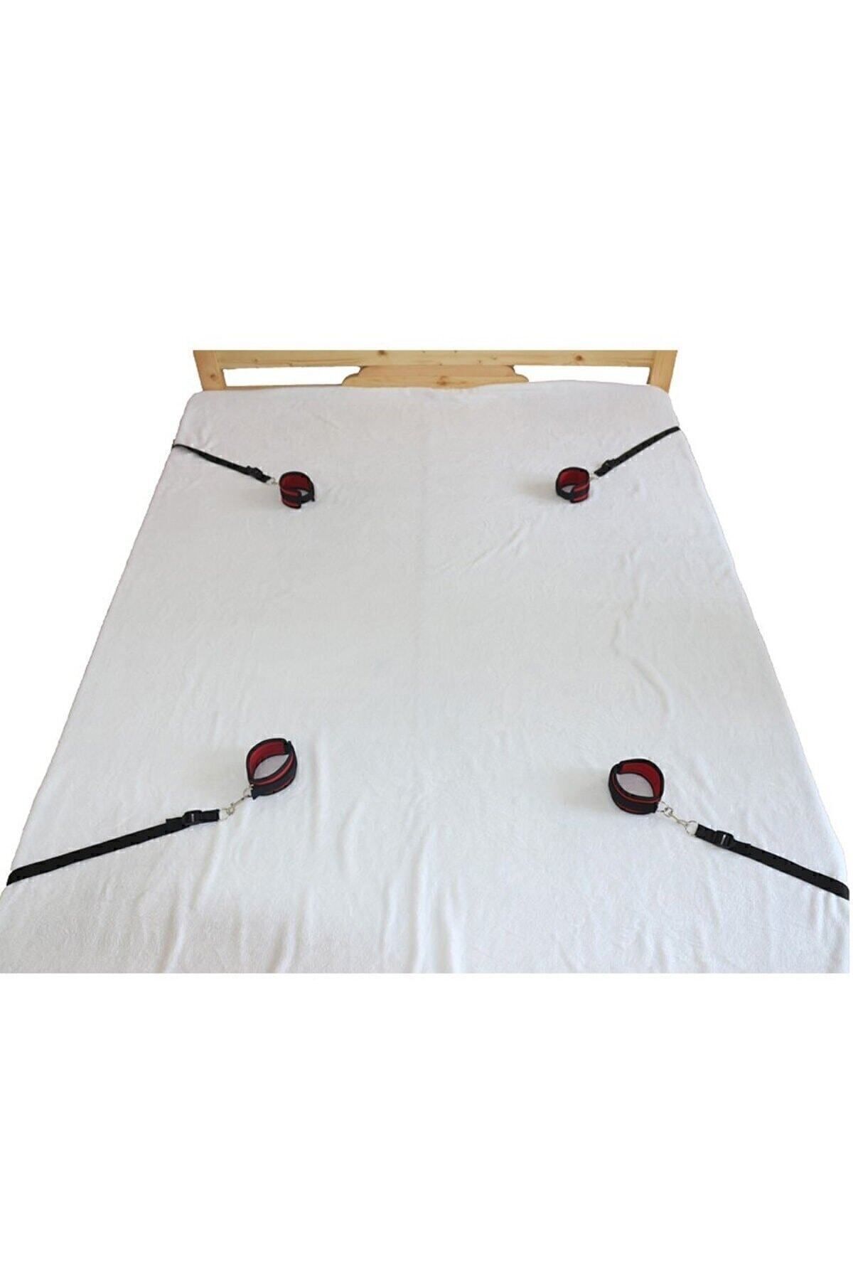 Kırmızı Fantezi Tek Veya Çift Kişilik Yatağa Ayarlanabilir, El Ayak Kelepçeli Cinsel Bağlama Seti EL045