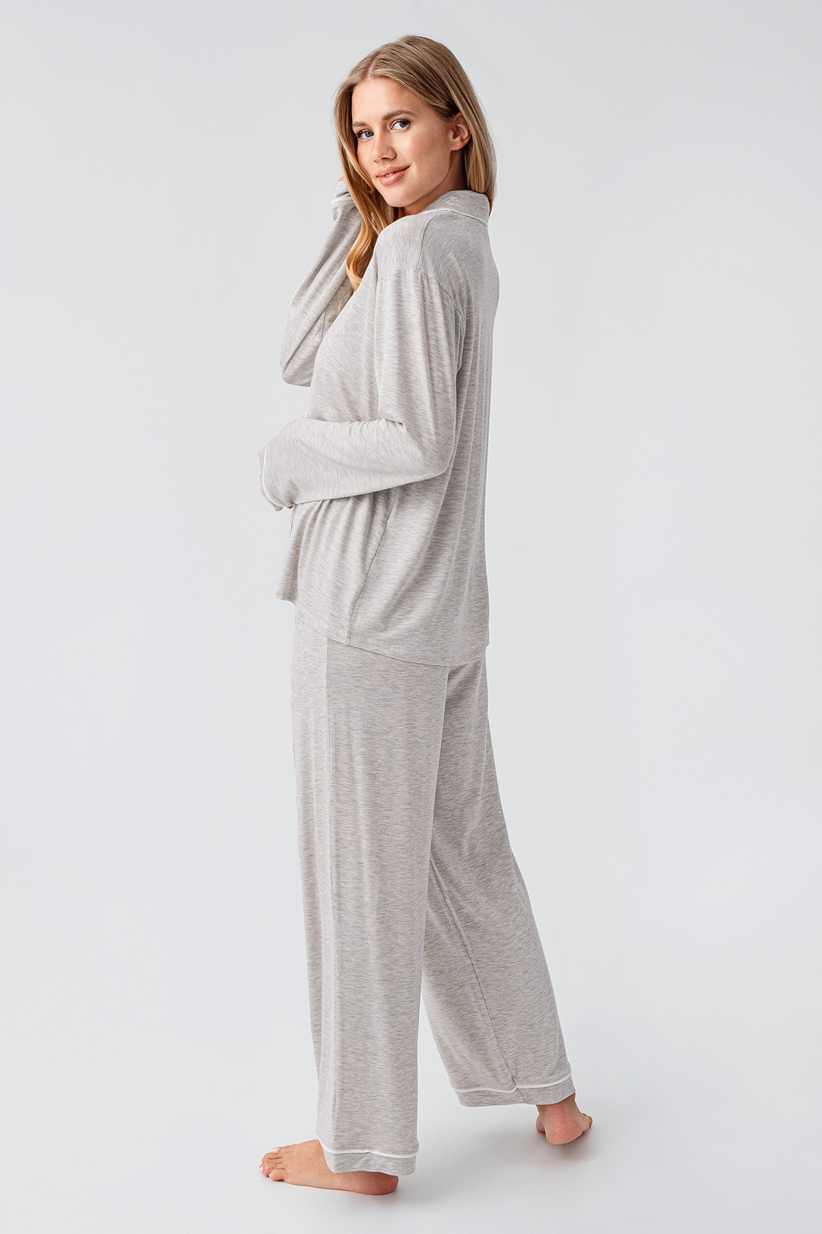 Uzun Kollu Düğmeli Oversize Esnek Viskoz Pijama Takım Uzun Kollu Düğmeli Oversize Esnek Viskoz Pijama Takım 18207 2XL