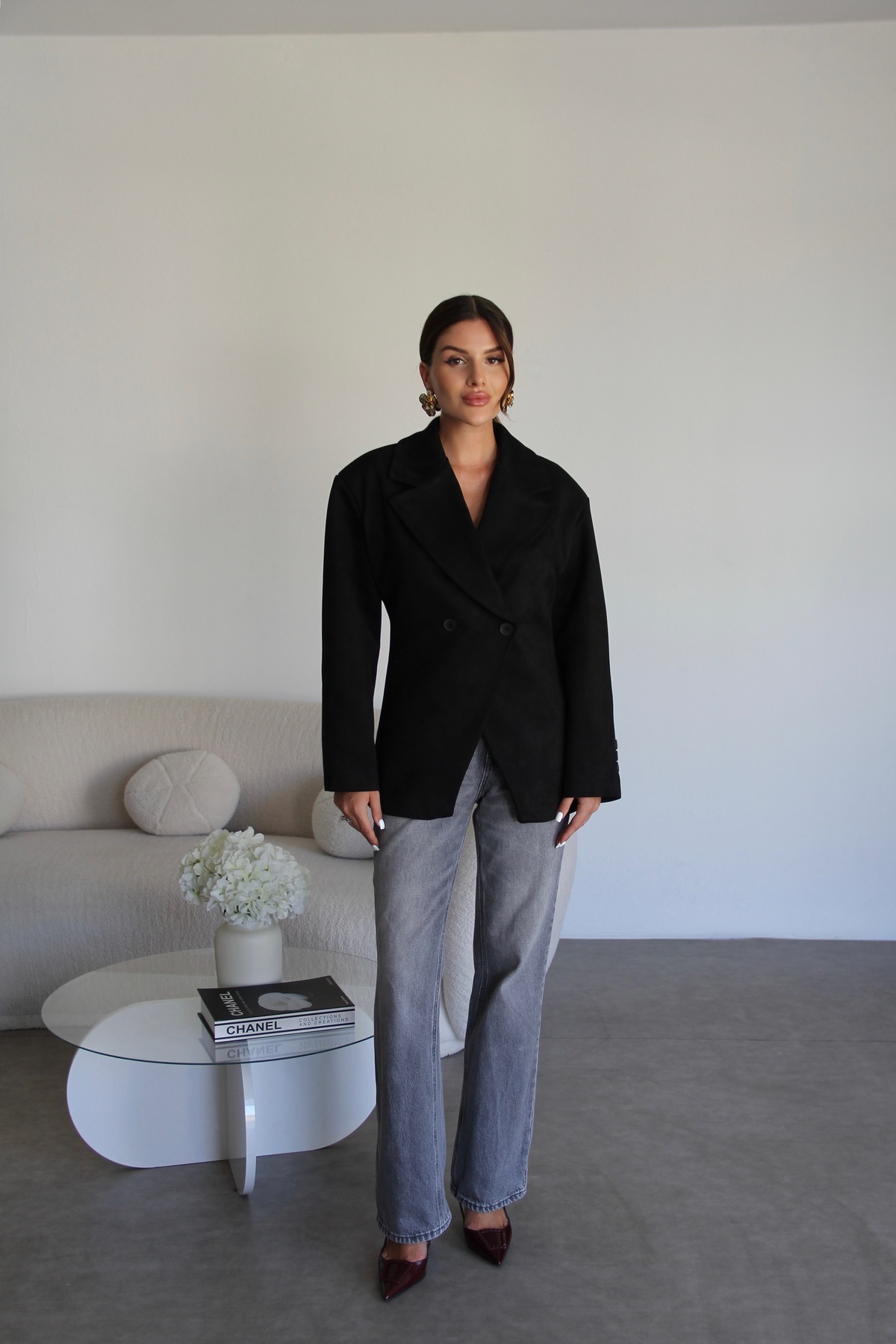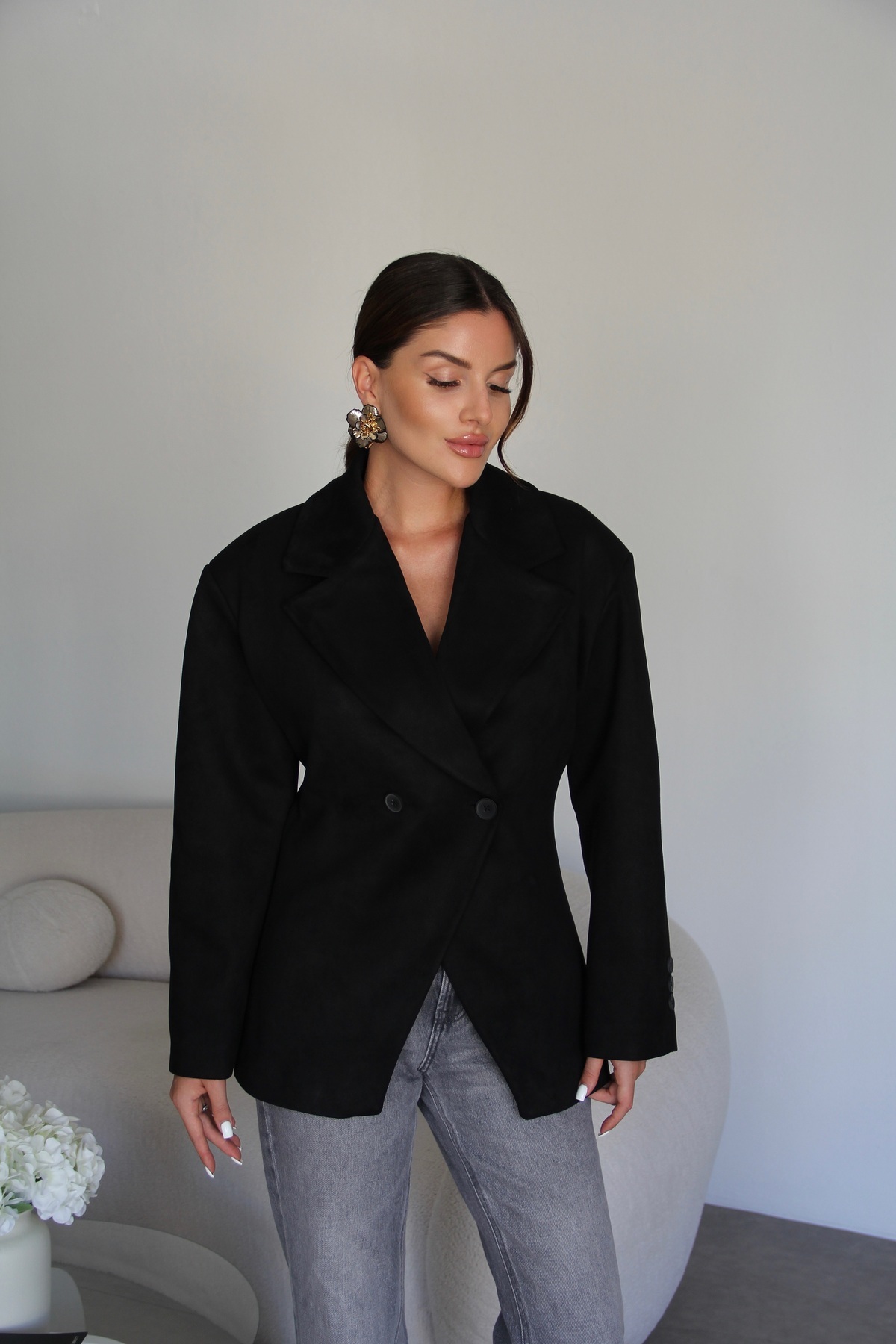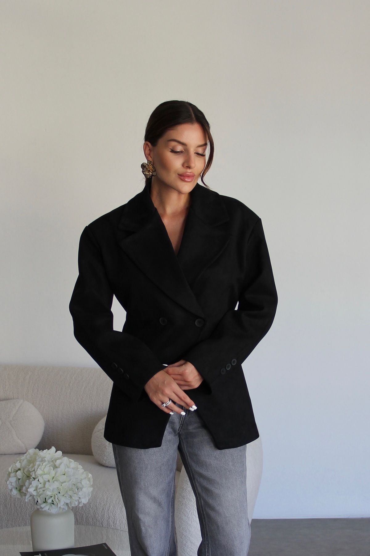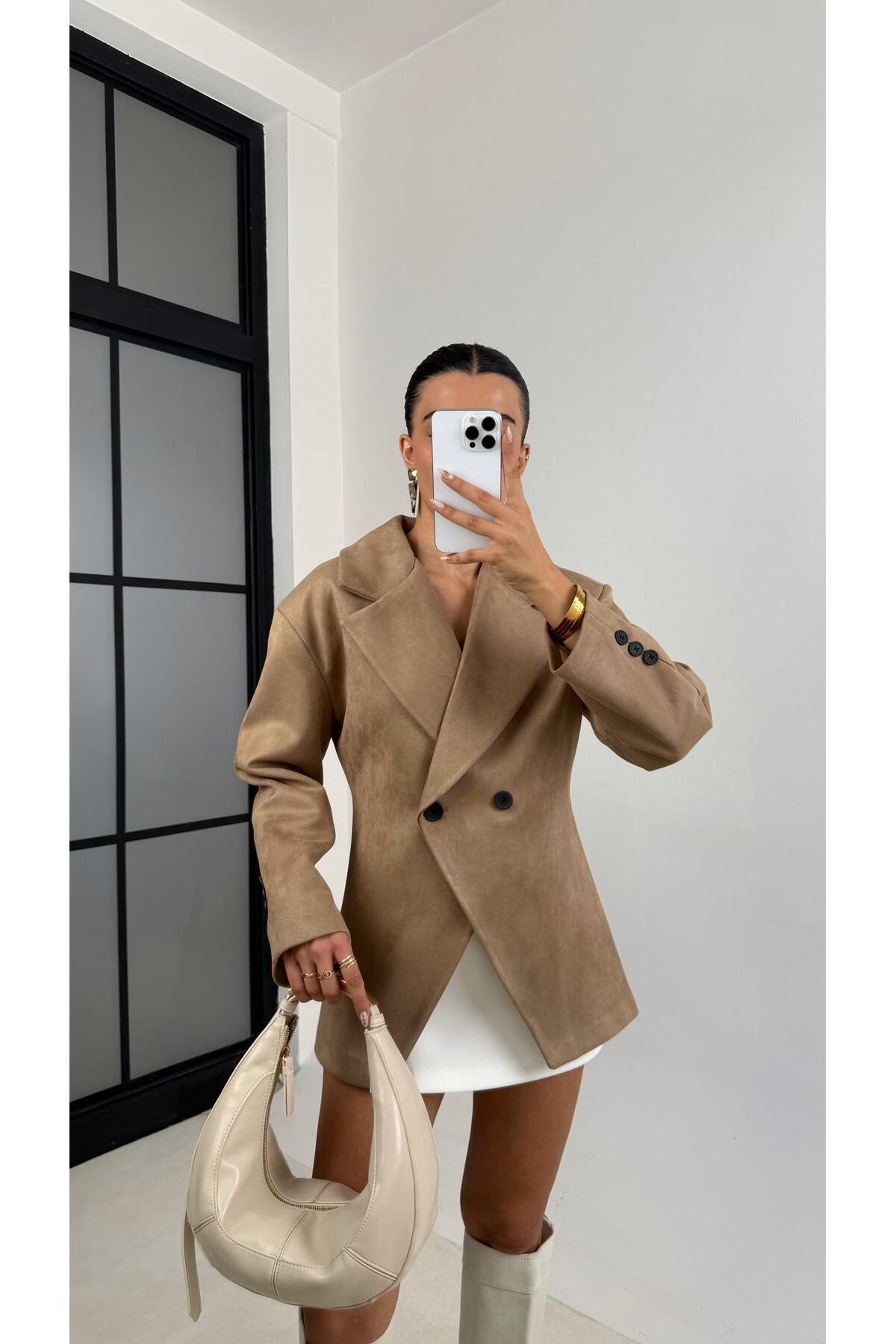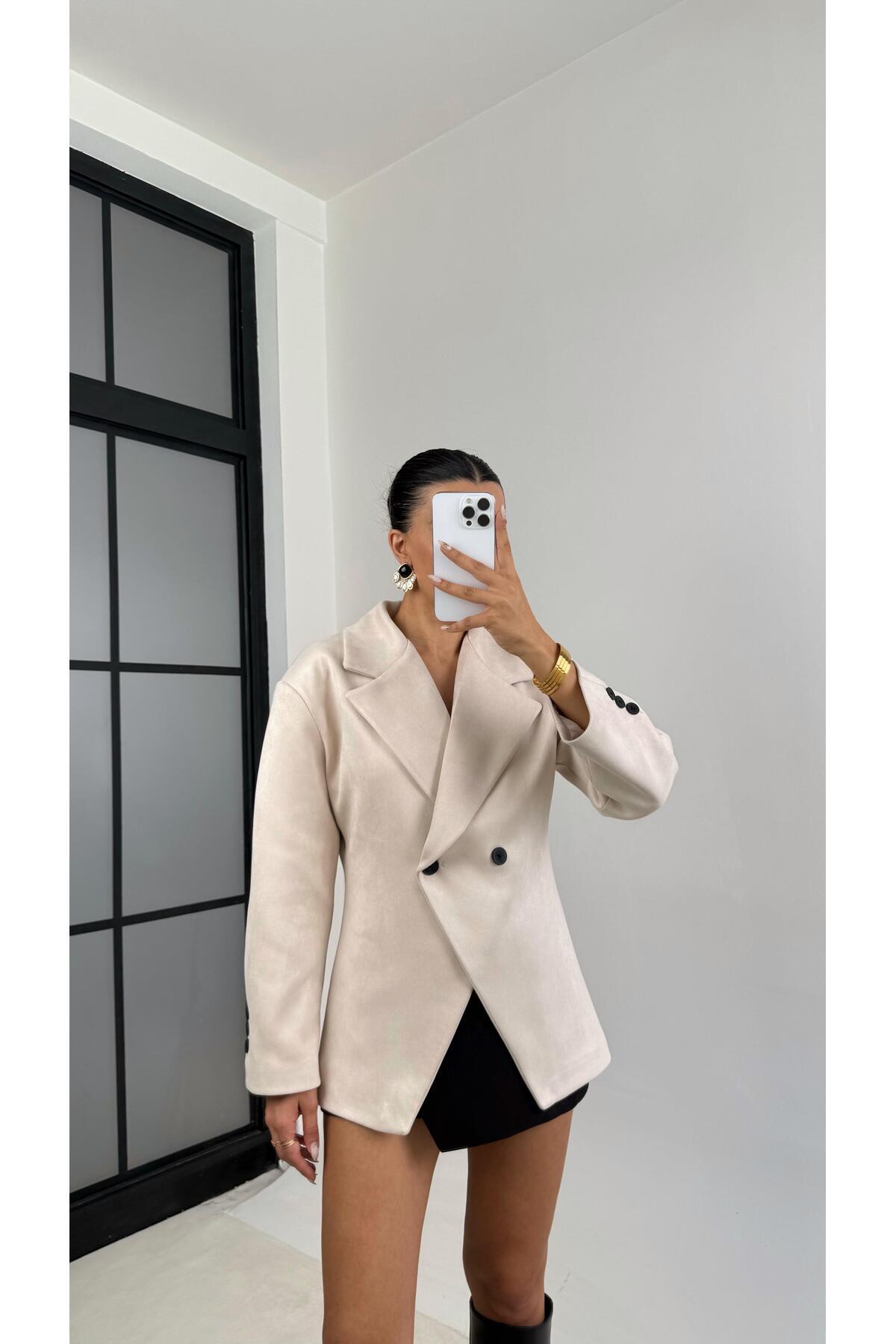 Siyah Vatkalı Kruvaze Astarlı Premium Süet Blazer Ceket Siyah Vatkalı Kruvaze Astarlı Premium Süet Blazer Ceket JulidressBLZ911 L