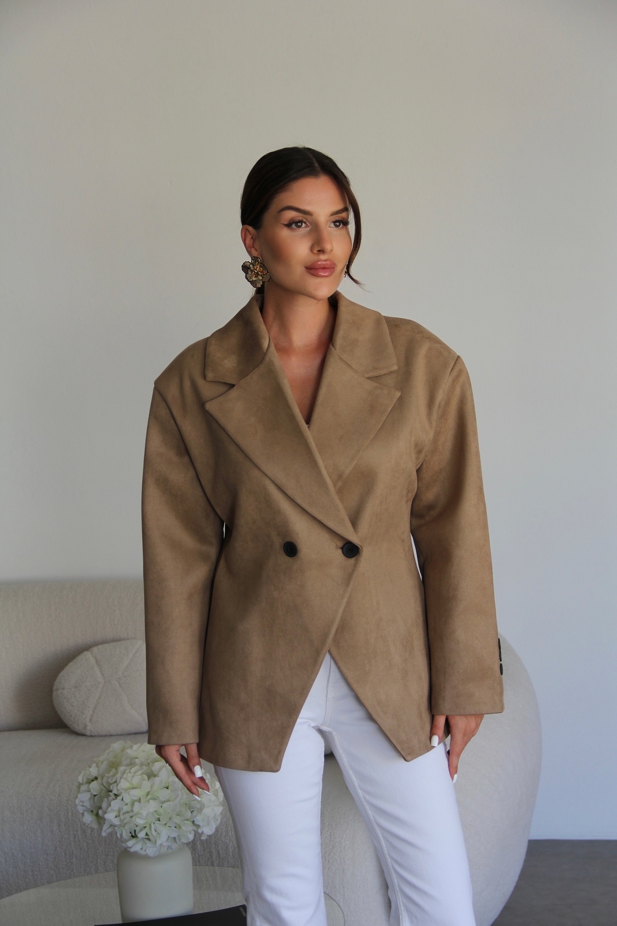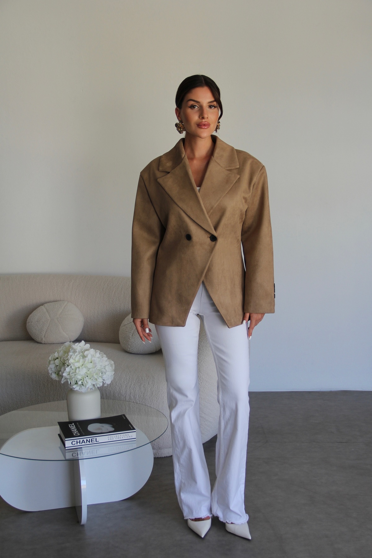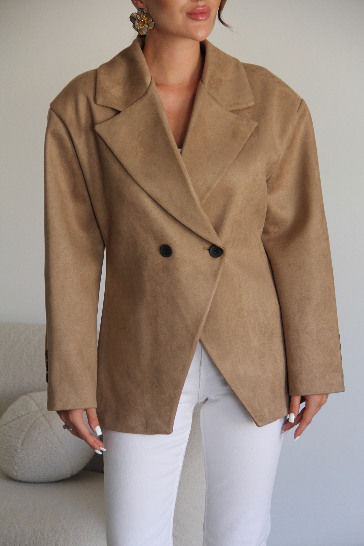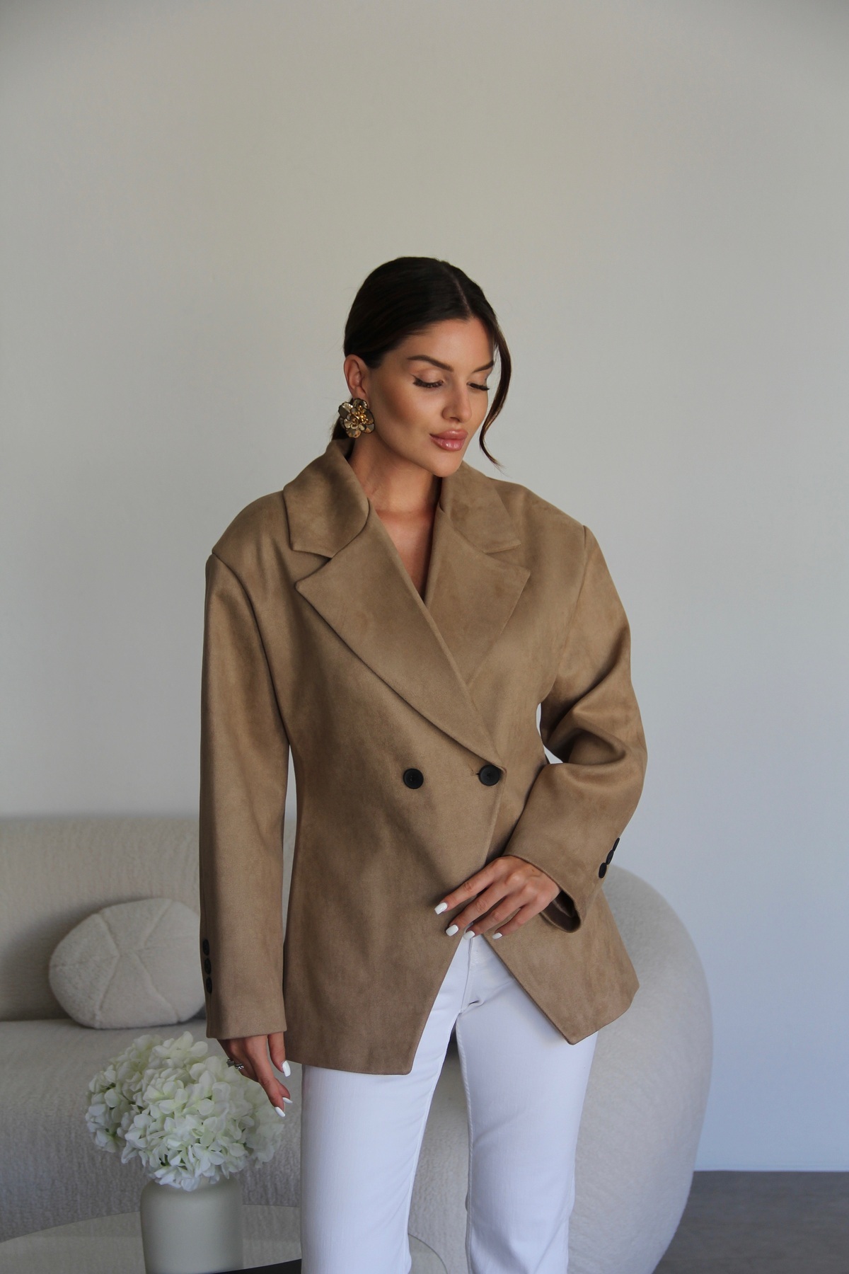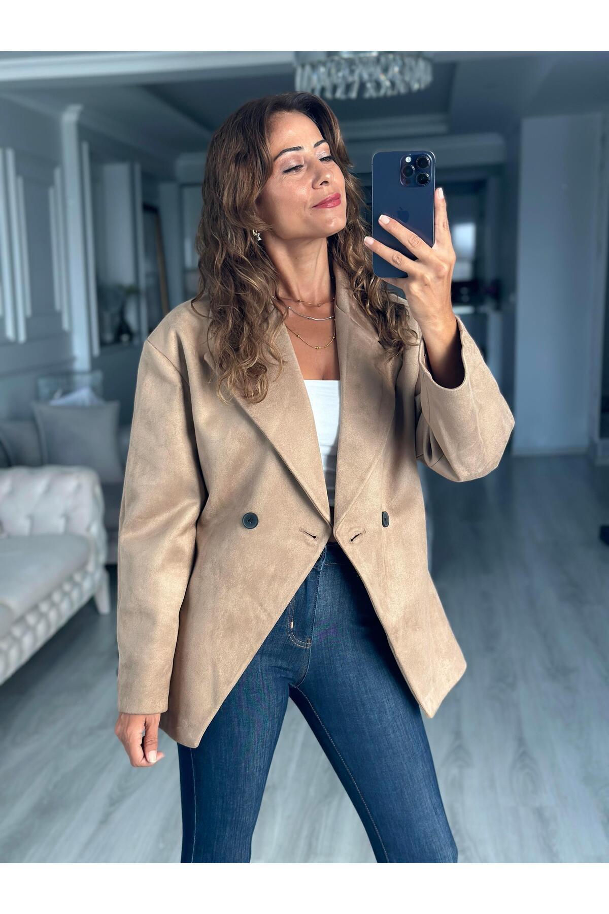 Vizon Vatkalı Kruvaze Astarlı Premium Süet Blazer Ceket Vizon Vatkalı Kruvaze Astarlı Premium Süet Blazer Ceket JulidressBLZ911 L