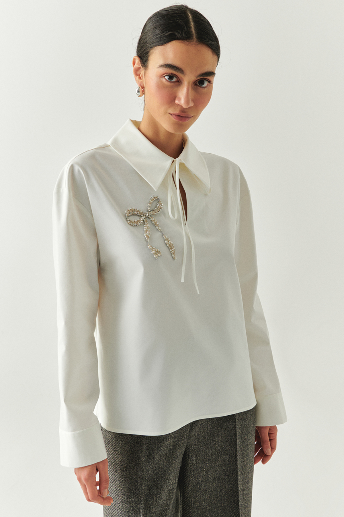Bisiklet Yaka Taş İşlemeli Uzun Kollu Oversize Triko Bluz Bisiklet Yaka Taş İşlemeli Uzun Kollu Oversize Triko Bluz E25K05123007 L