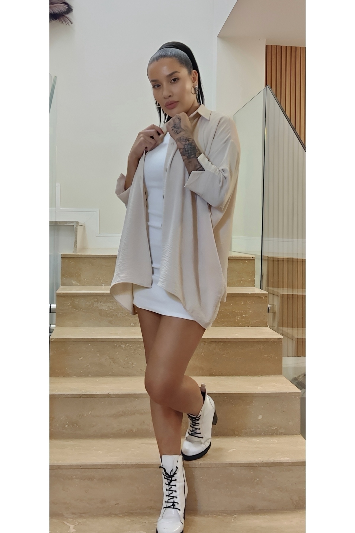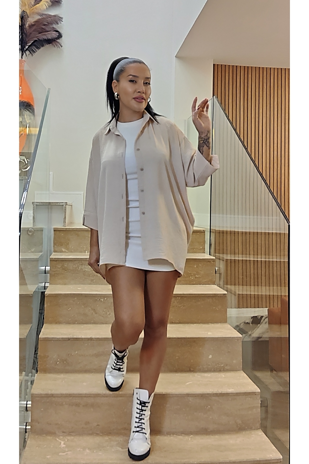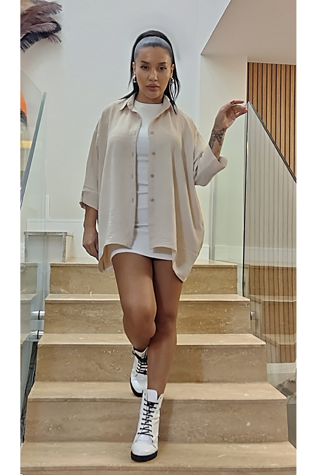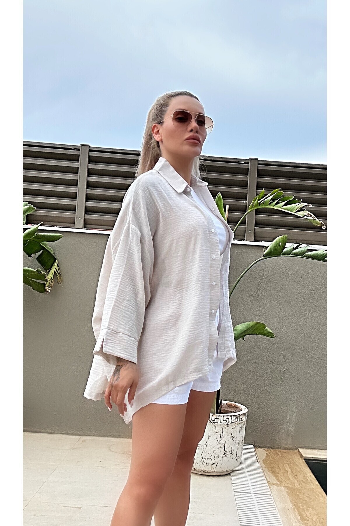 Kadın Bej Oversize Büyük Beden Aerobin Keten Gömlek Kadın Bej Oversize Büyük Beden Aerobin Keten Gömlek arbkg1001 3