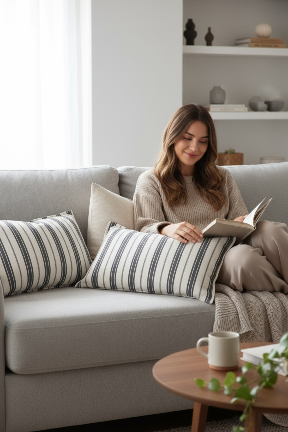 " Gobi " - Keten Çizgili Desenli Kırlent 30x50cm (Ic Yastık Dahil) " Gobi " - Keten Çizgili Desenli Kırlent 30x50cm (Ic Yastık Dahil) 30 x 50