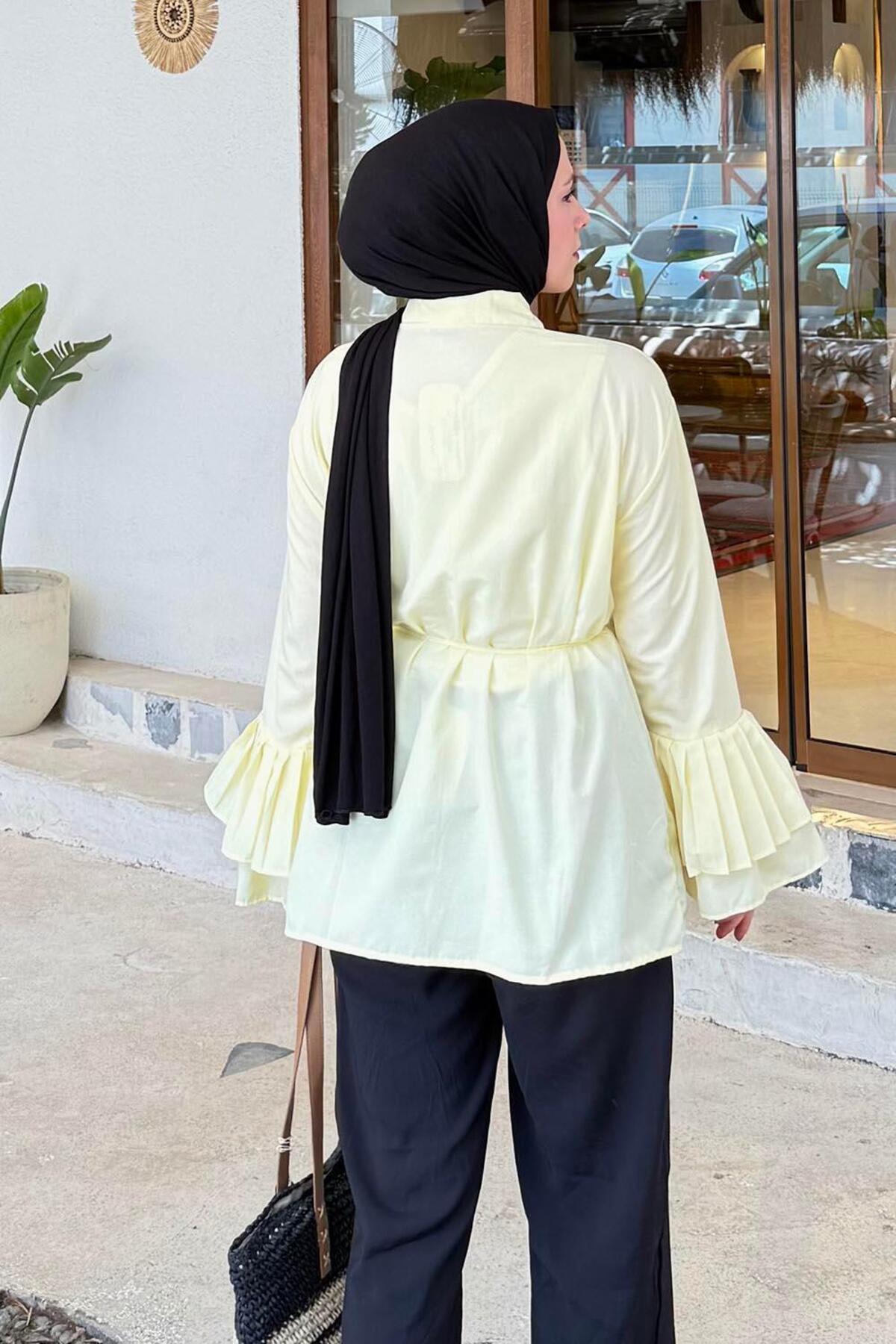 Piliseli Uzun Gömlek Sarı Piliseli Uzun Gömlek Sarı HNZ8973 XL