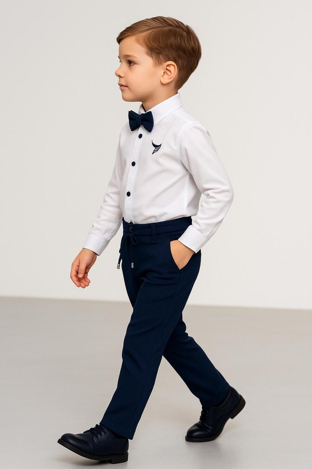 erkek çocuk özel gün/ nakışlı gömlek pantolon papyon takım/duble paça bağcıklı pantolon erkek çocuk özel gün/ nakışlı gömlek pantolon papyon takım/duble paça bağcıklı pantolon 7257 9 Yaş