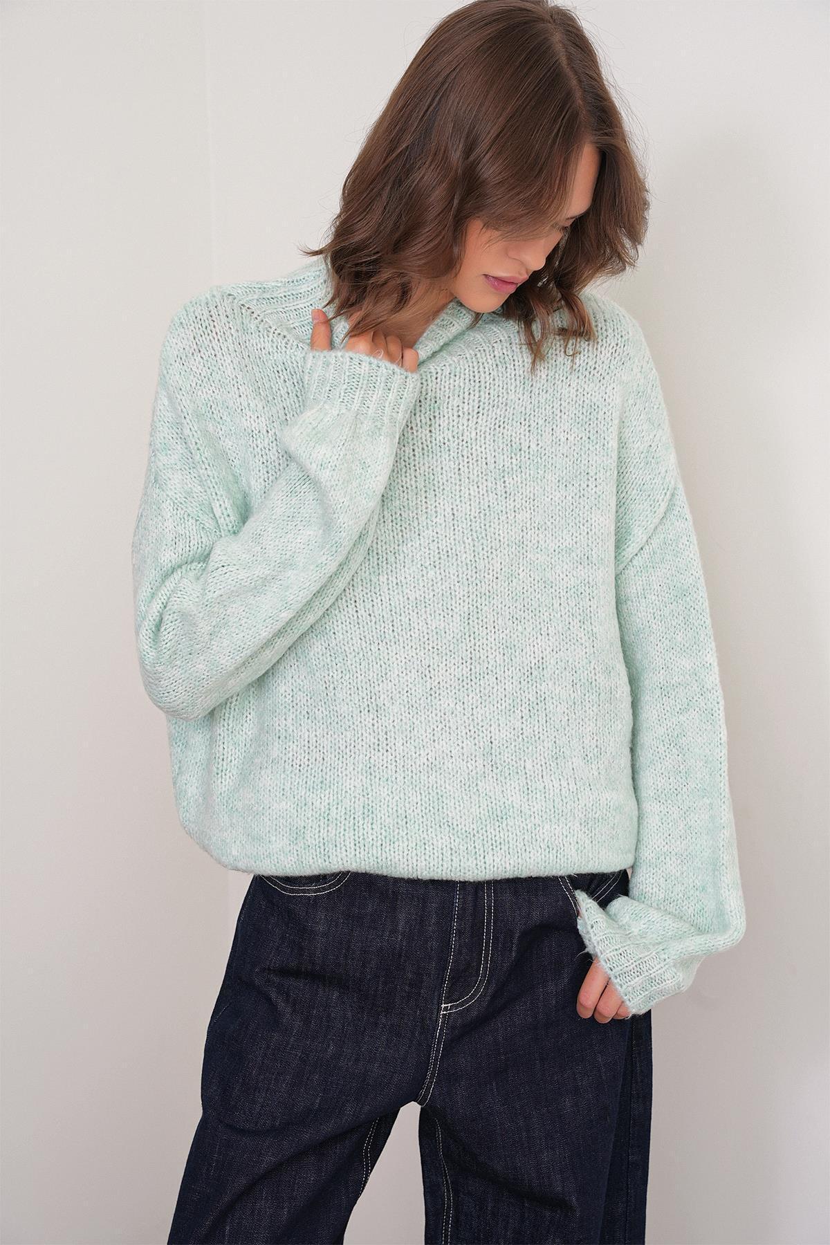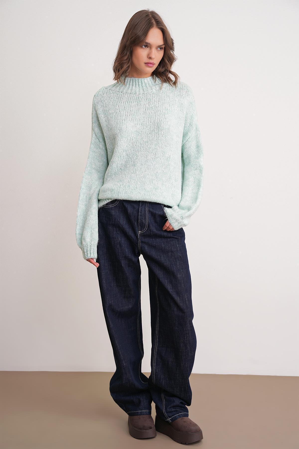 6700 Kadın Dik Yaka Balon Triko Kazak Mint 6700 Kadın Dik Yaka Balon Triko Kazak Mint K24KZK6700 Standart