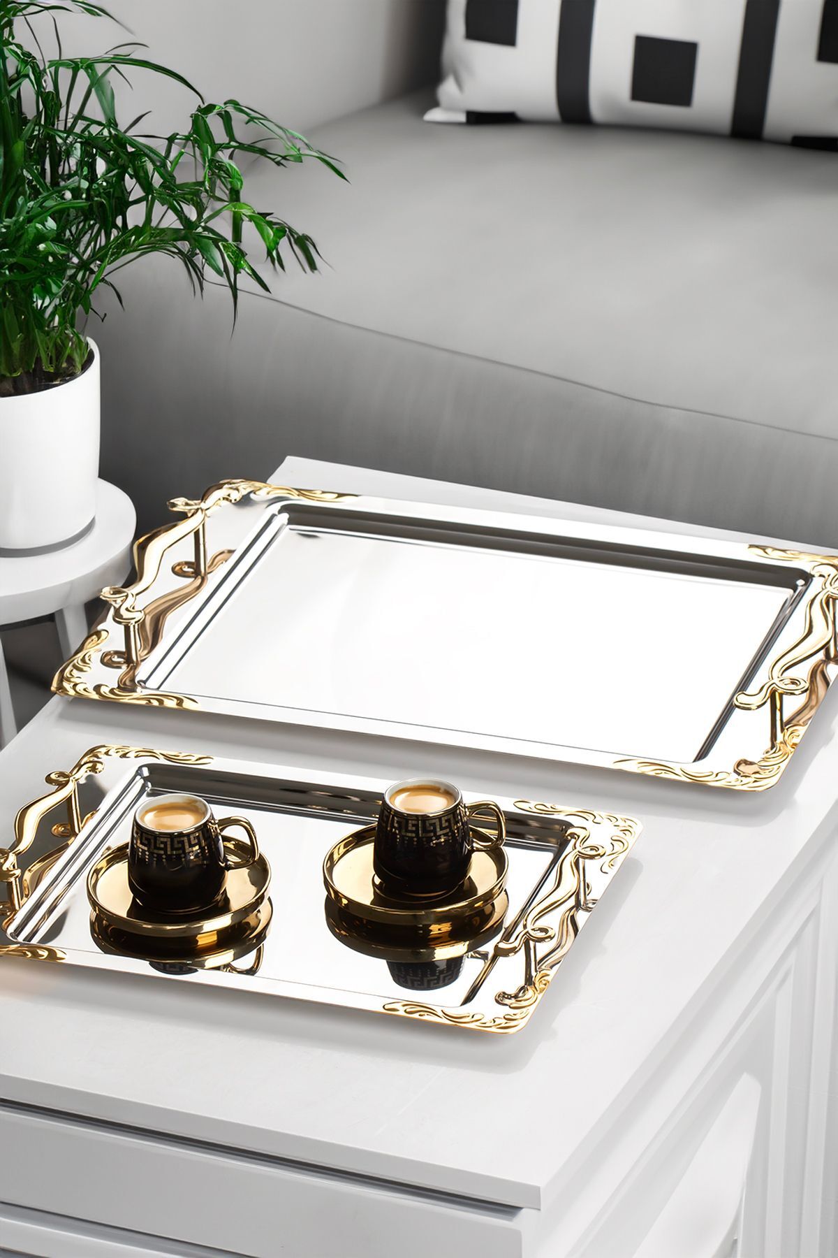 Sare Altın Saten 2'li Çelik Tepsi Seti Sare Altın Saten 2'li Çelik Tepsi Seti 8697076543061 تک سایز