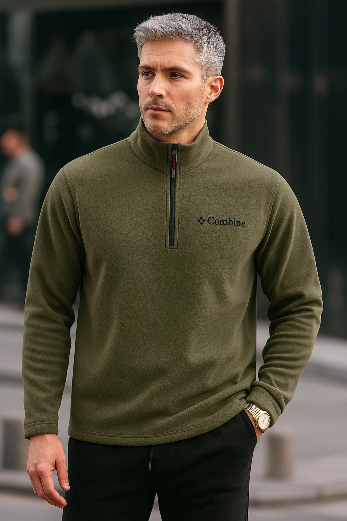 Erkek Yarım Fermuarlı Haki Dar Polar Sweat Erkek Yarım Fermuarlı Haki Dar Polar Sweat Ayna-1207 2XL