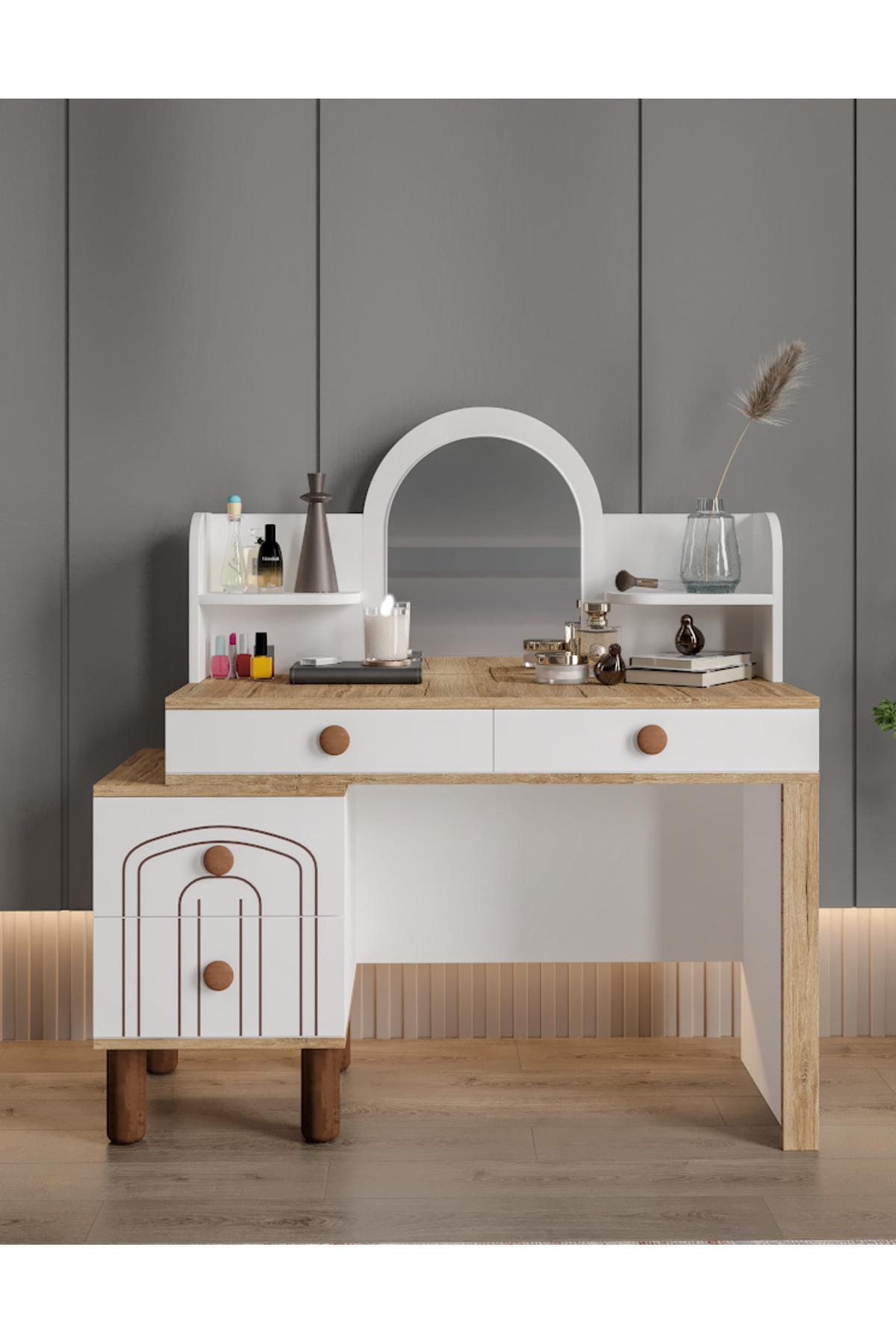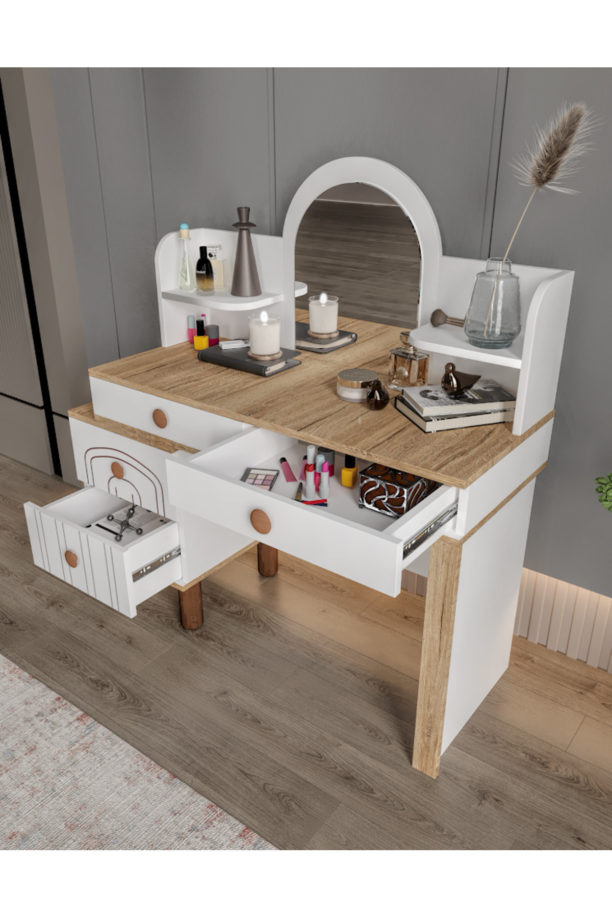Hilal 4 Çekmeceli Makyaj Masası Tamamı Mdf Hilal 4 Çekmeceli Makyaj Masası Tamamı Mdf HİLMKJ.001 تک سایز