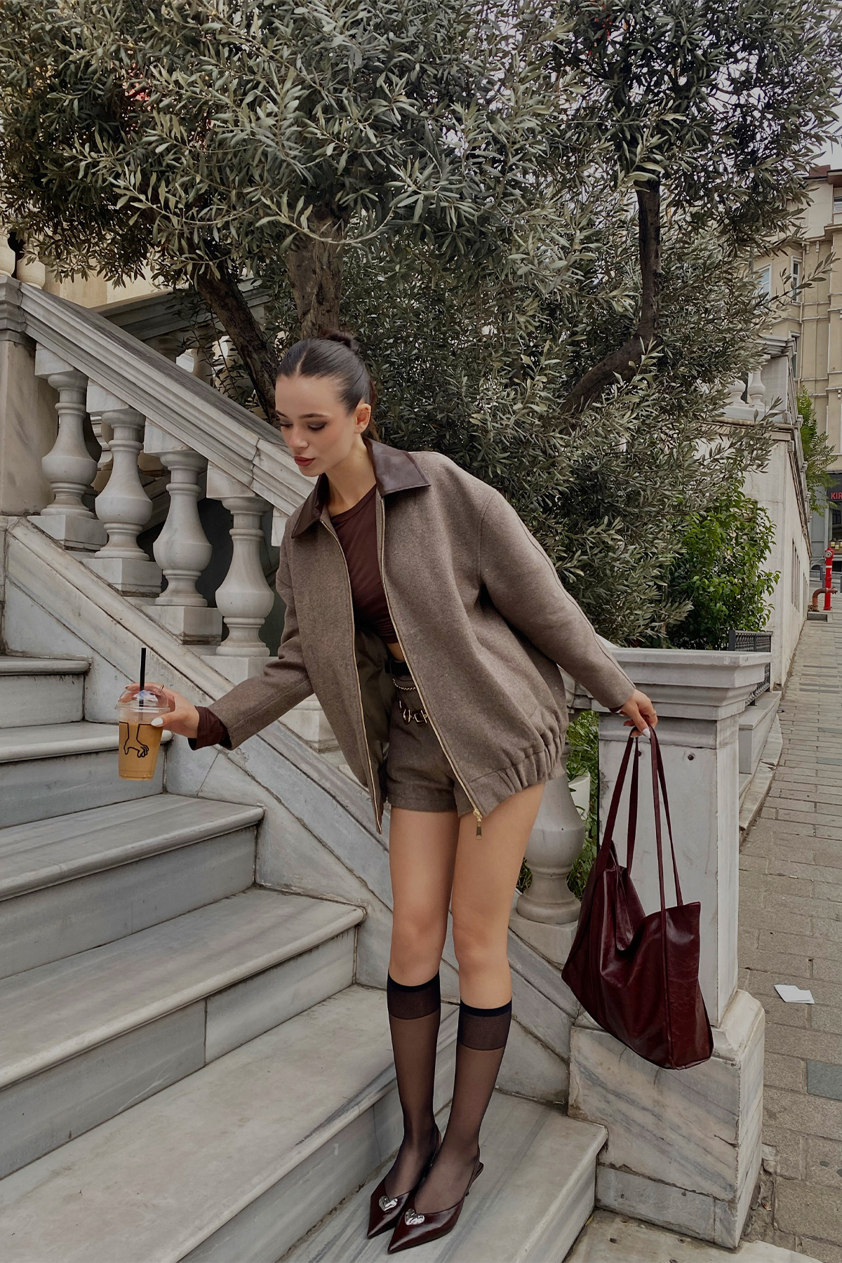 Beli Lastikli Deri Ceket Kahverengi Beli Lastikli Deri Ceket Kahverengi 26KCKT01017 L