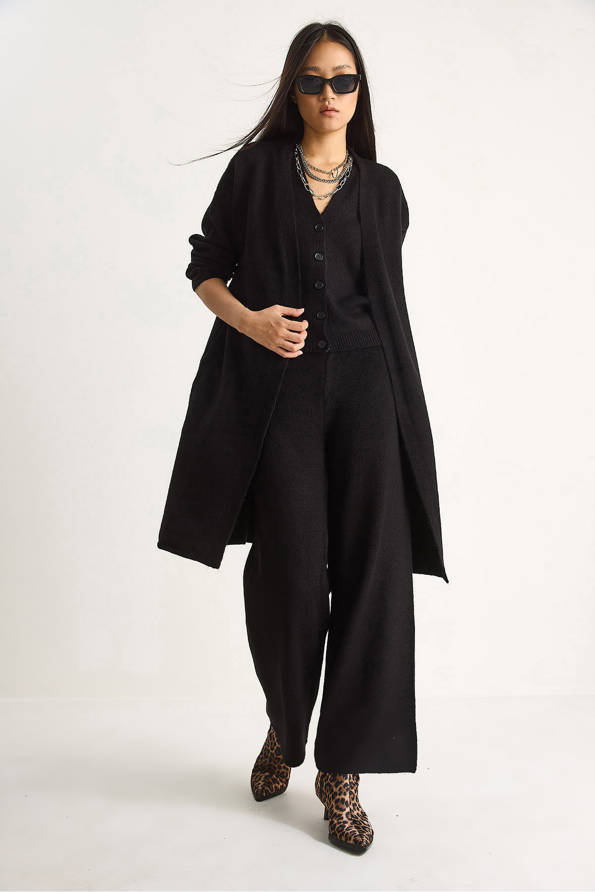 Kadın Yüksek Bel Pantolon Yelek Hırka Üçlü Triko Takım 20247573 Kadın Yüksek Bel Pantolon Yelek Hırka Üçlü Triko Takım 20247573 Standart