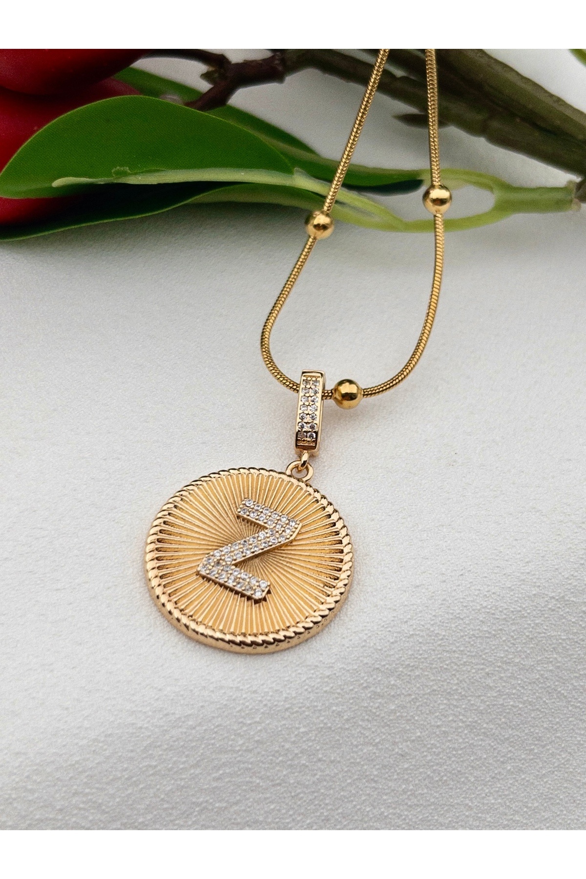 مشخصات فنی Özel Seri Kararmaz Çelik Zirkon Taşlı Dorika Zincirli Harfli Kolye - Madalyon Kolye