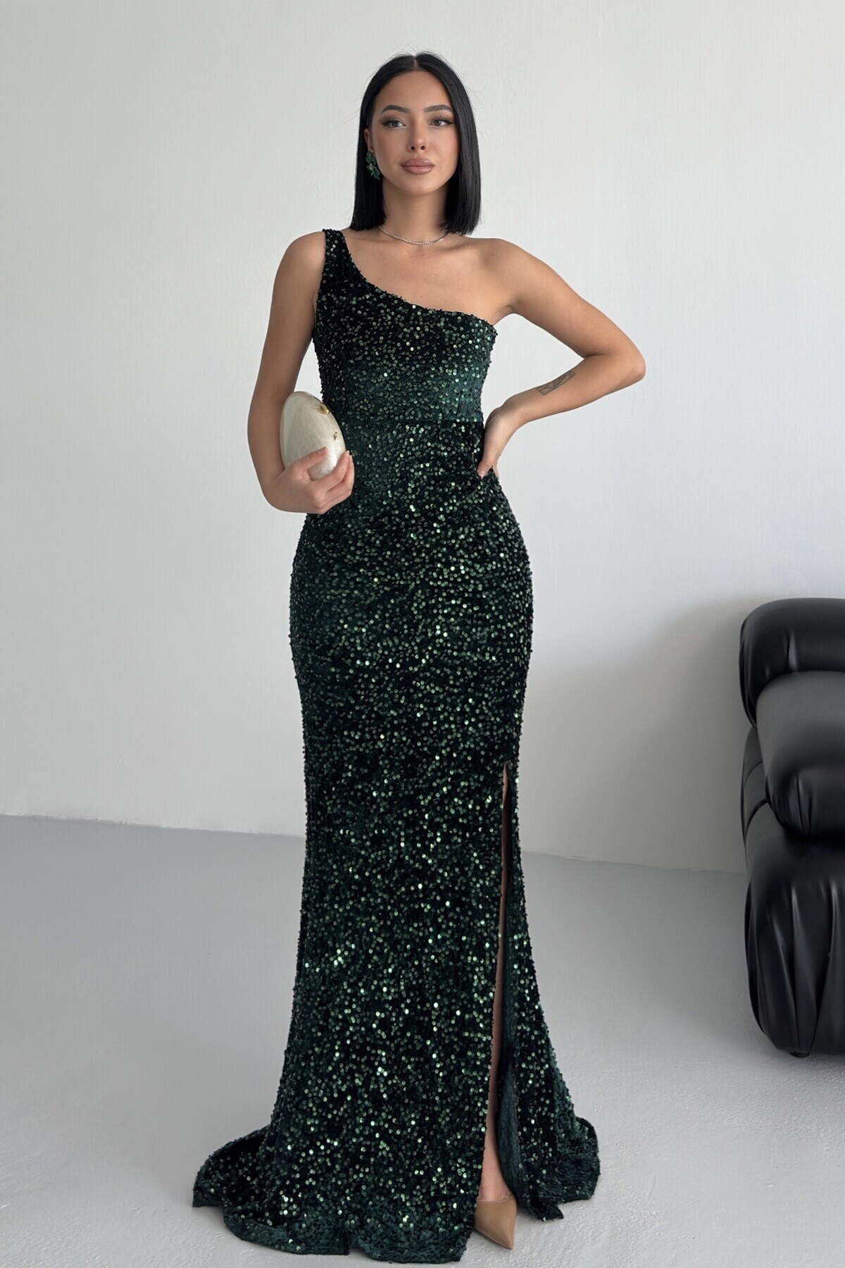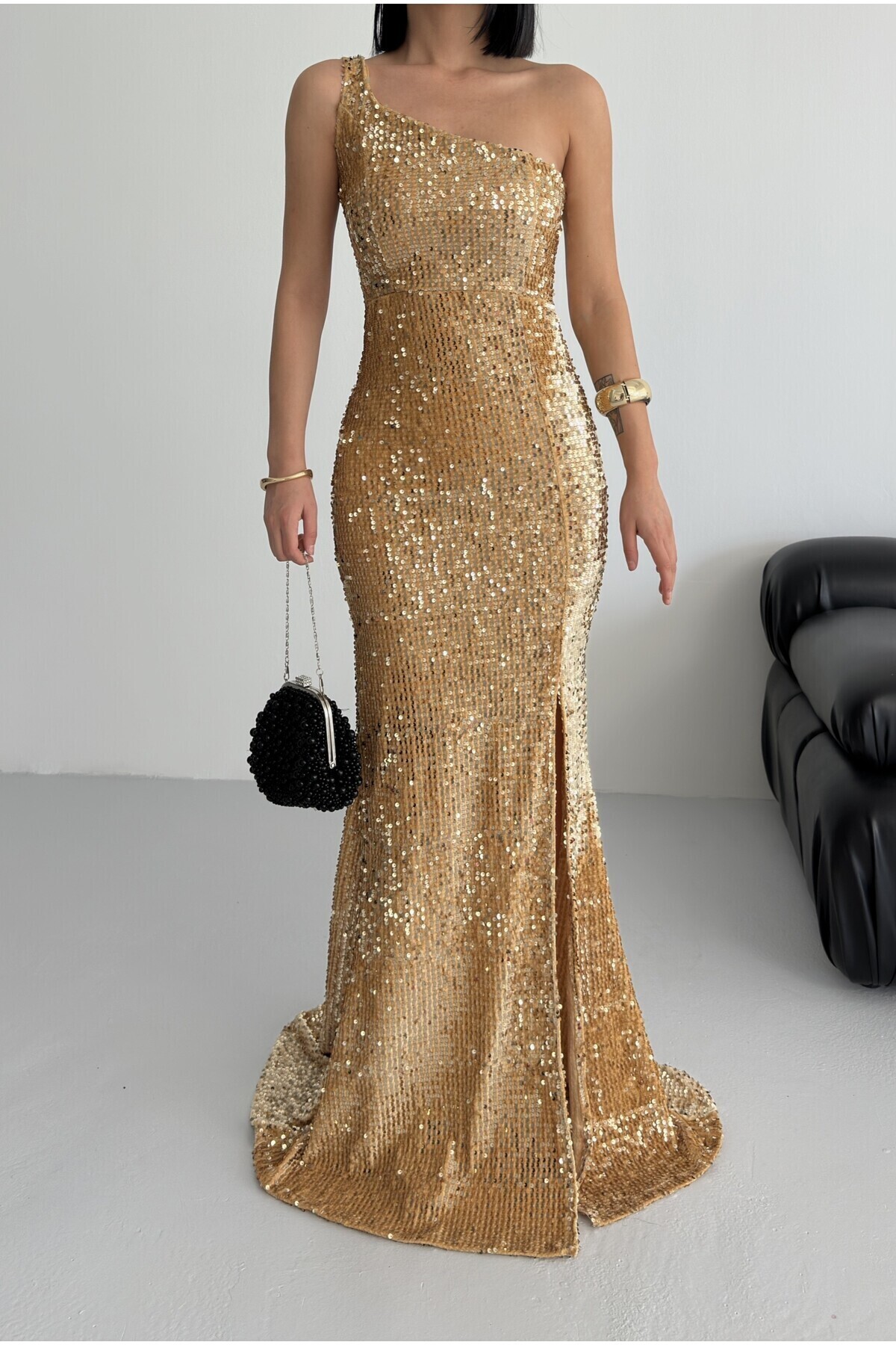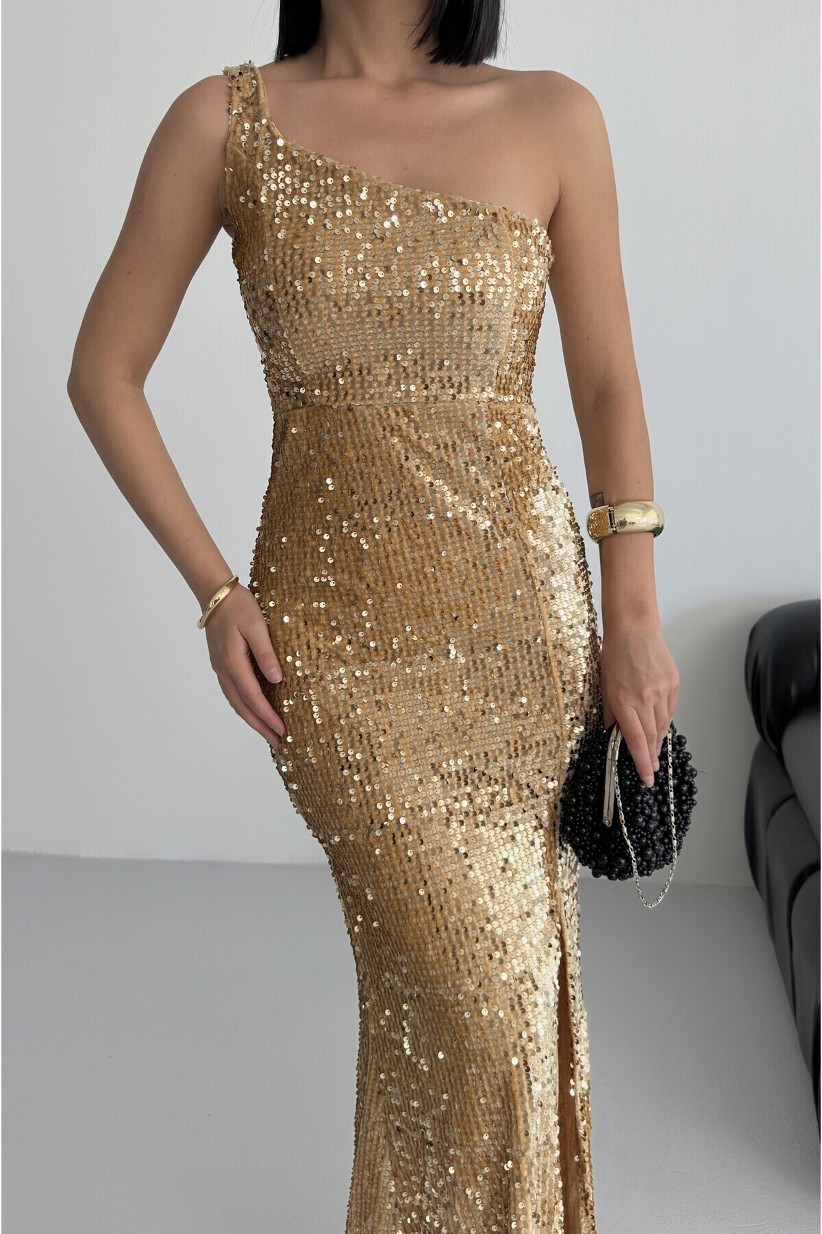 Trend Kadife Pullu Elbise Gold Trend Kadife Pullu Elbise Gold AMC194 4XL