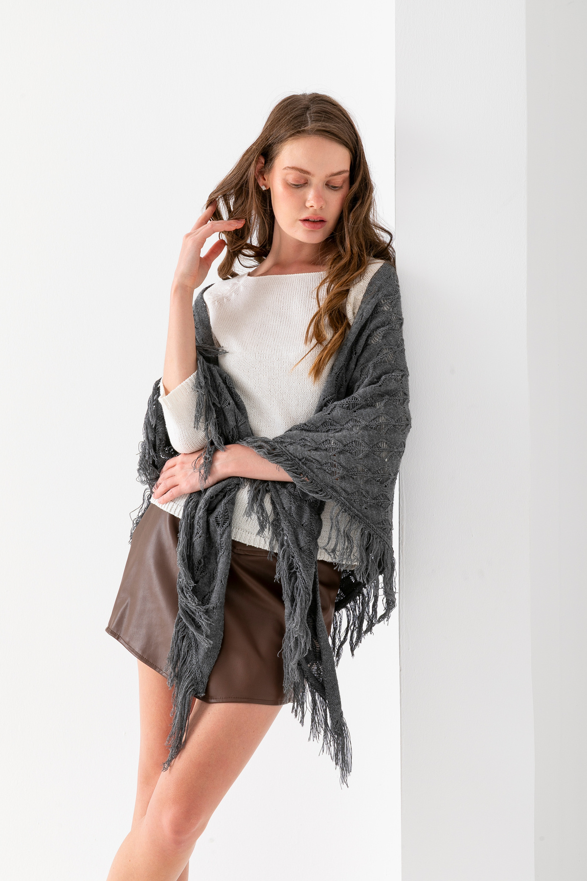Ajurlu Püsküllü Kadın Üçgen Şal - Yumuşak ve Şık Dokulu Omuz Atkısı | El Örgüsü Görünümlü Ajurlu Püsküllü Kadın Üçgen Şal - Yumuşak ve Şık Dokulu Omuz Atkısı | El Örgüsü Görünümlü AJURLU.UCGEN.SAL.000 75 x 200