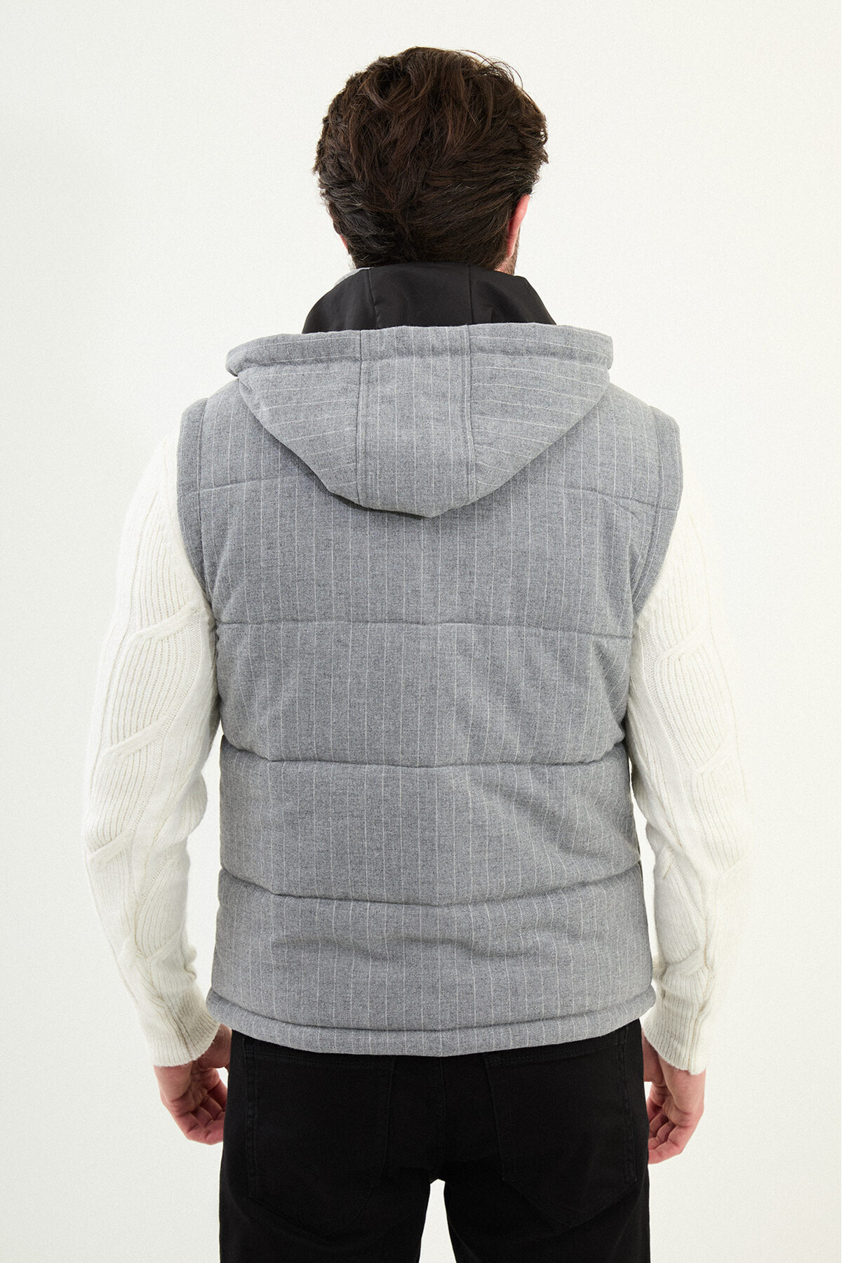 Çizgili Slim Fit Kapşonlu Şişme Erkek Yelek Gri - 40950.25K Çizgili Slim Fit Kapşonlu Şişme Erkek Yelek Gri - 40950.25K 58