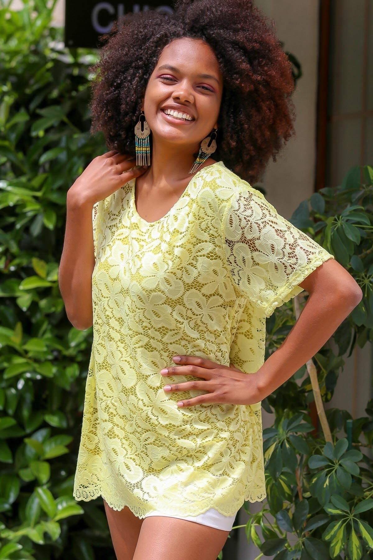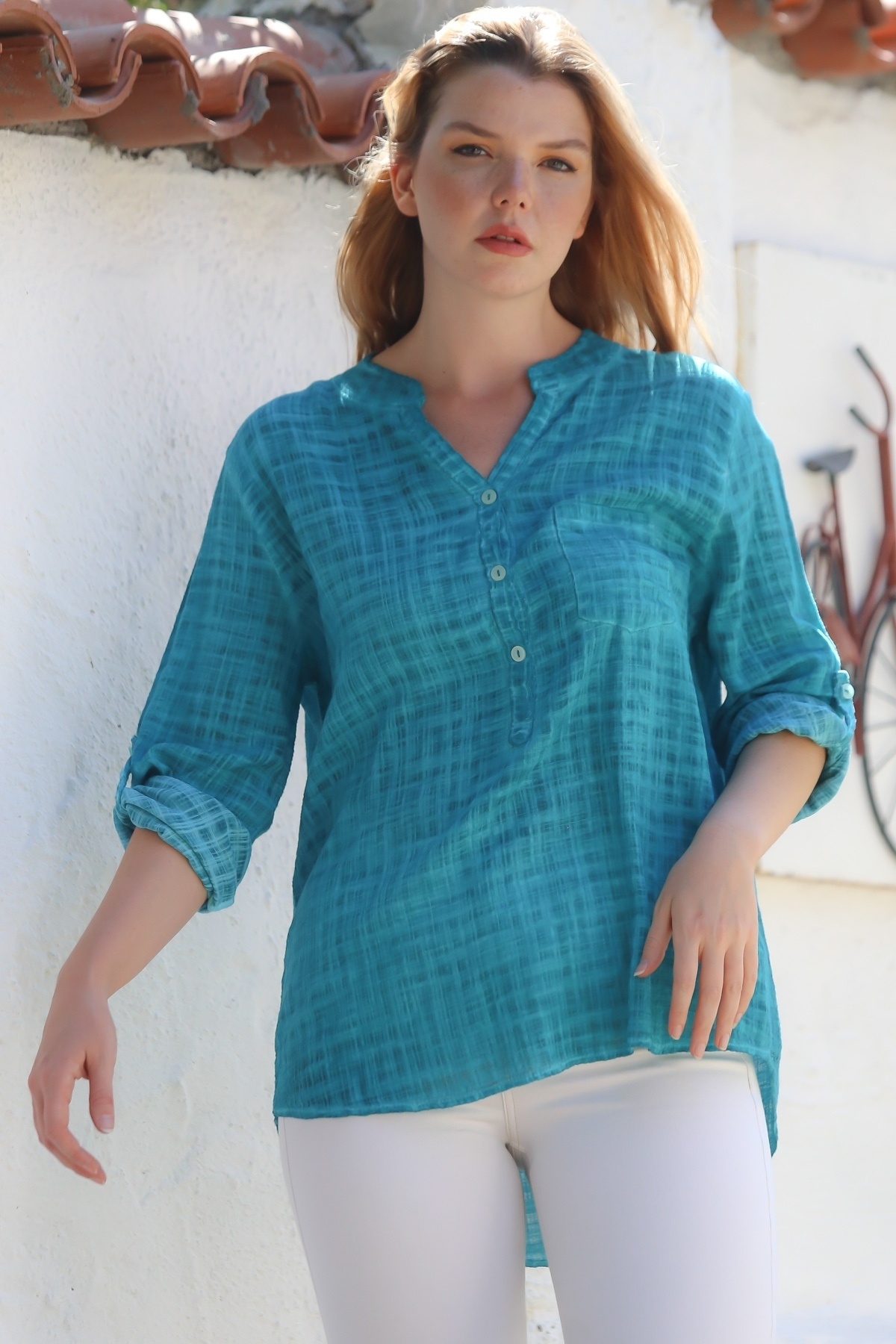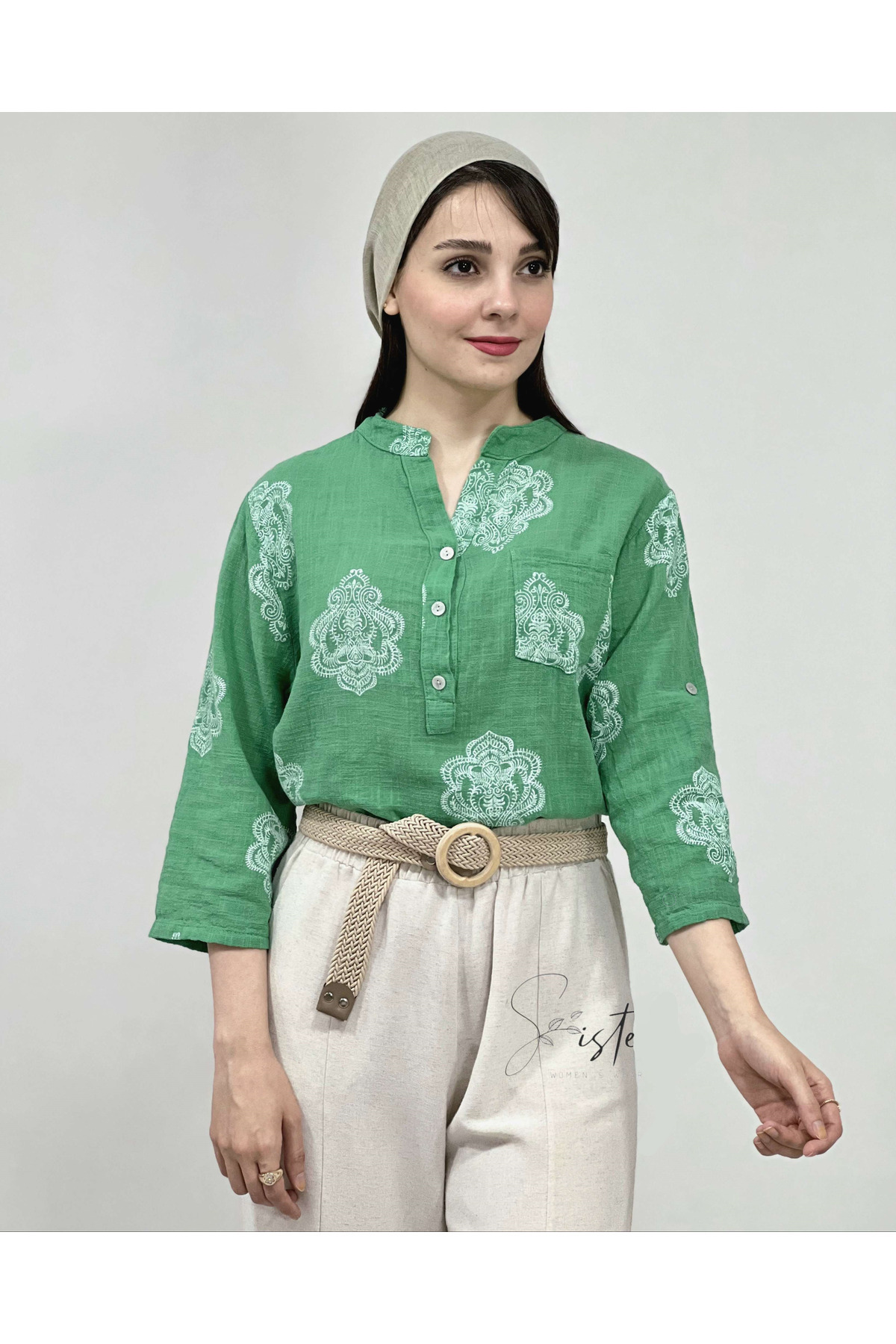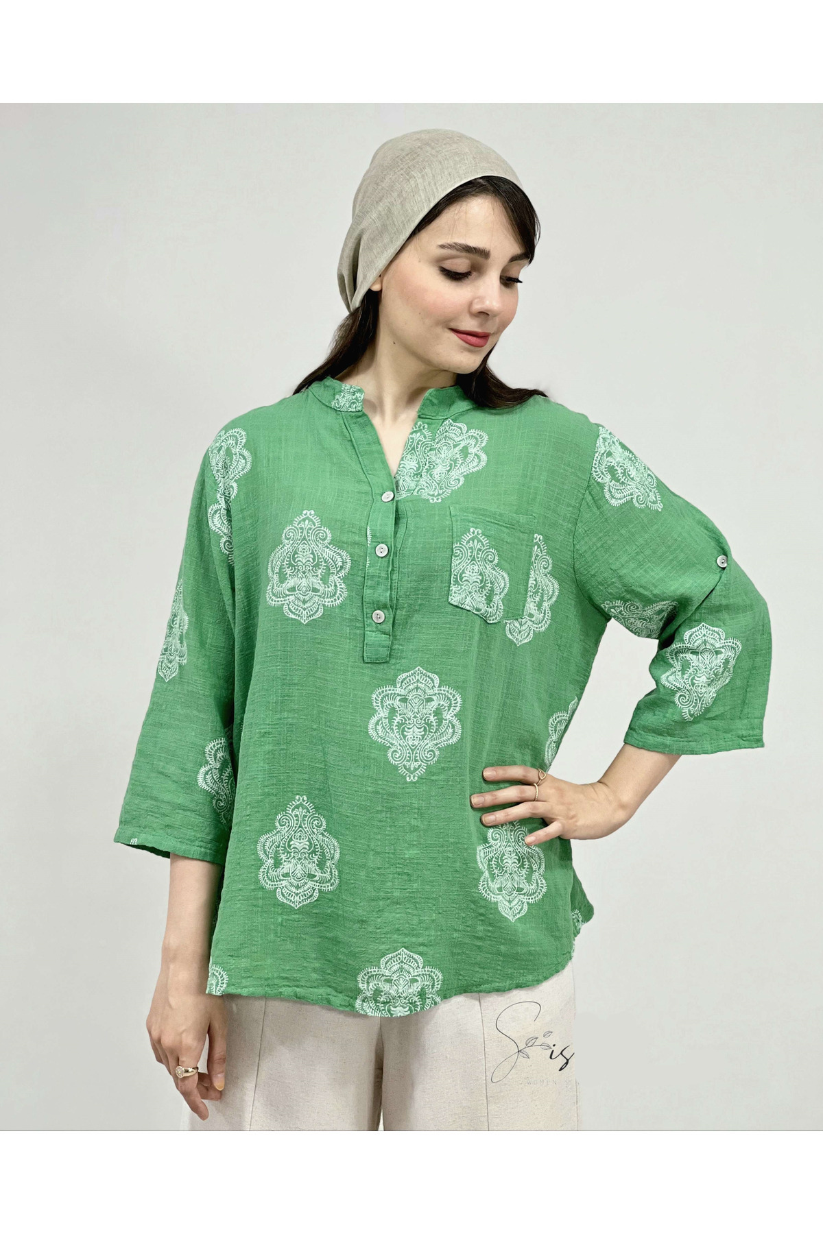 Kadın Desenli Pamuklu İtalyan Bluz - Yeşil ll Kadın Desenli Pamuklu İtalyan Bluz - Yeşil ll CLT285 Standart