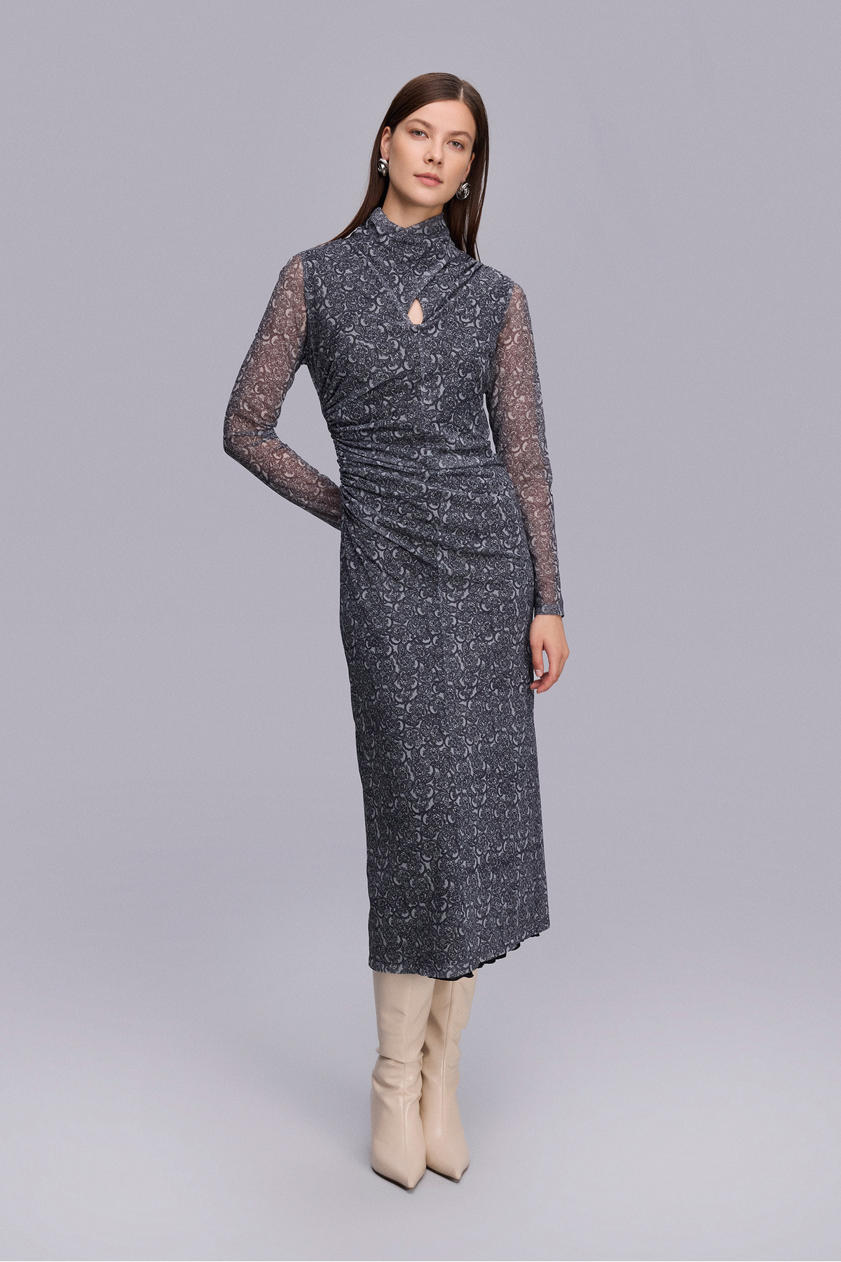 Yaprak Desen Büzgü Detaylı Uzun Elbise Yaprak Desen Büzgü Detaylı Uzun Elbise 112YD61K1780 46