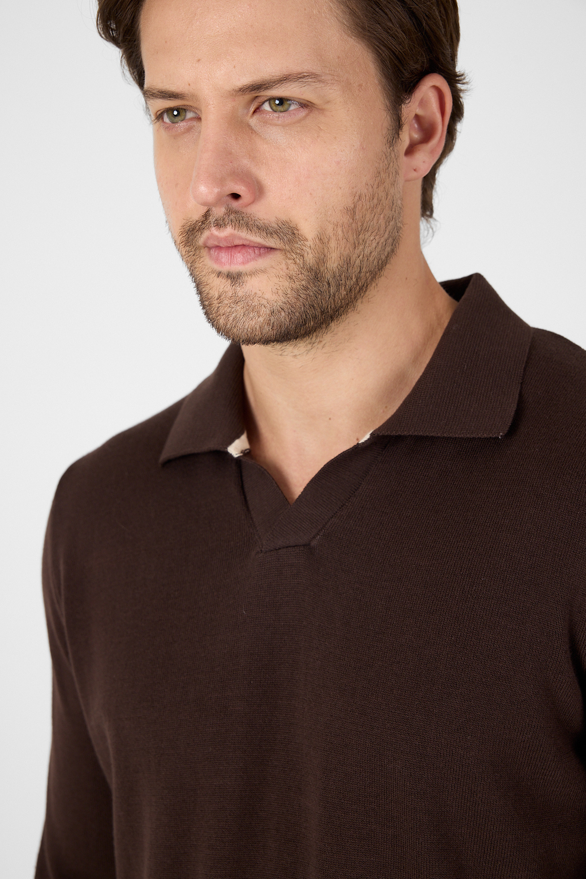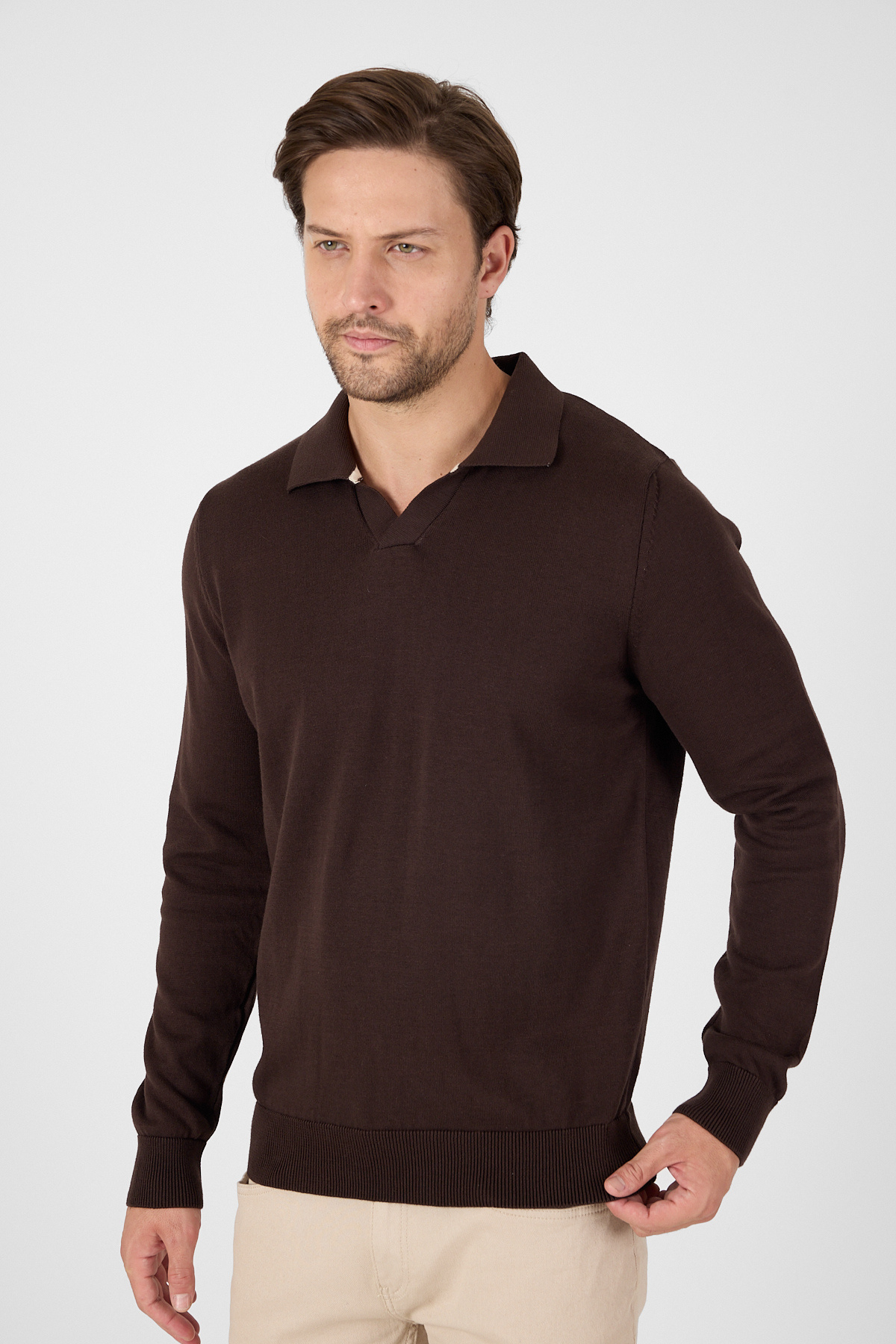 Kahverengi %100 Pamuk Erkek Patlı Düğmesiz Polo Yaka Triko Kazak Kahverengi %100 Pamuk Erkek Patlı Düğmesiz Polo Yaka Triko Kazak 170163 3XL