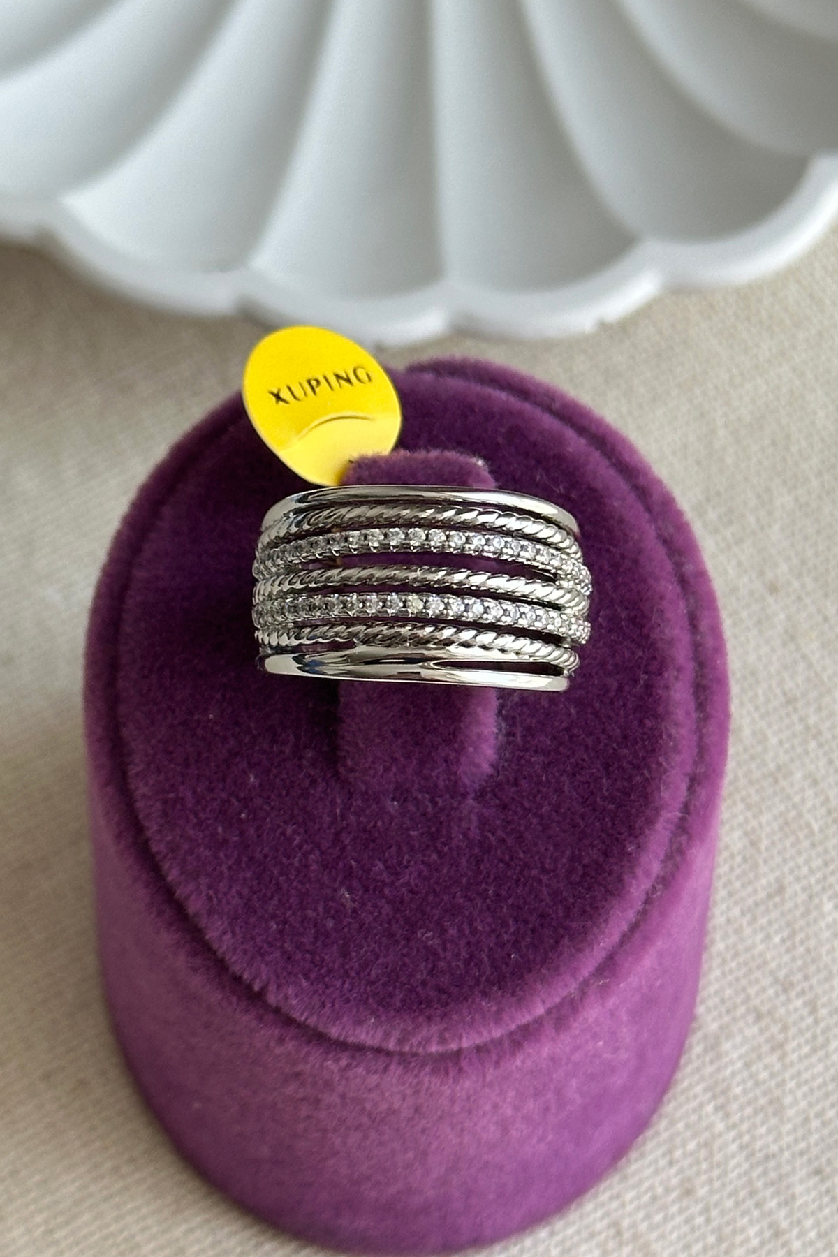 Xuping Asimetrik Taşlı Çizgili Kadın Yüzük – Kararmaz Gümüş Renk Takı | Xuping Yüzük Xuping Asimetrik Taşlı Çizgili Kadın Yüzük – Kararmaz Gümüş Renk Takı | Xuping Yüzük CPRYZK1769 16 mm