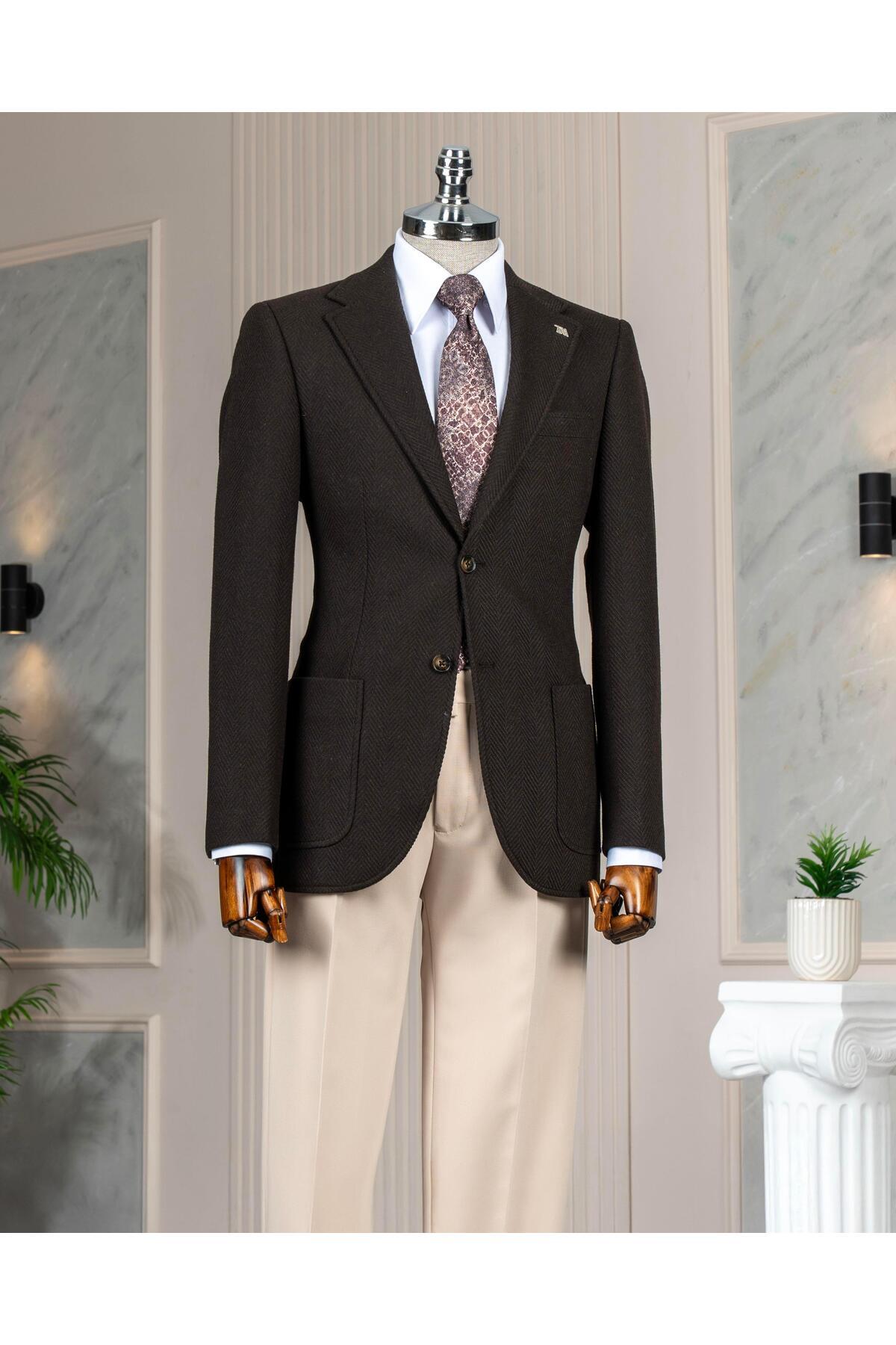 İtalyan stil slim fit mono yaka erkek tek ceket lacivert T14398 İtalyan stil slim fit mono yaka erkek tek ceket lacivert T14398 58