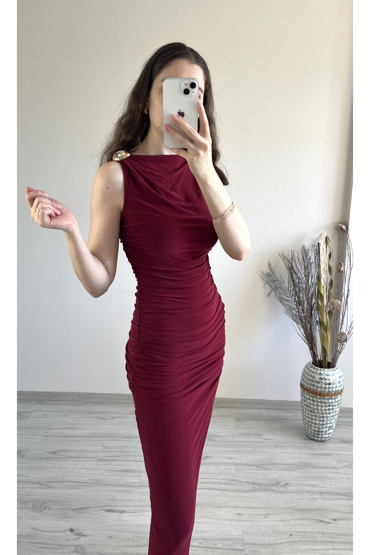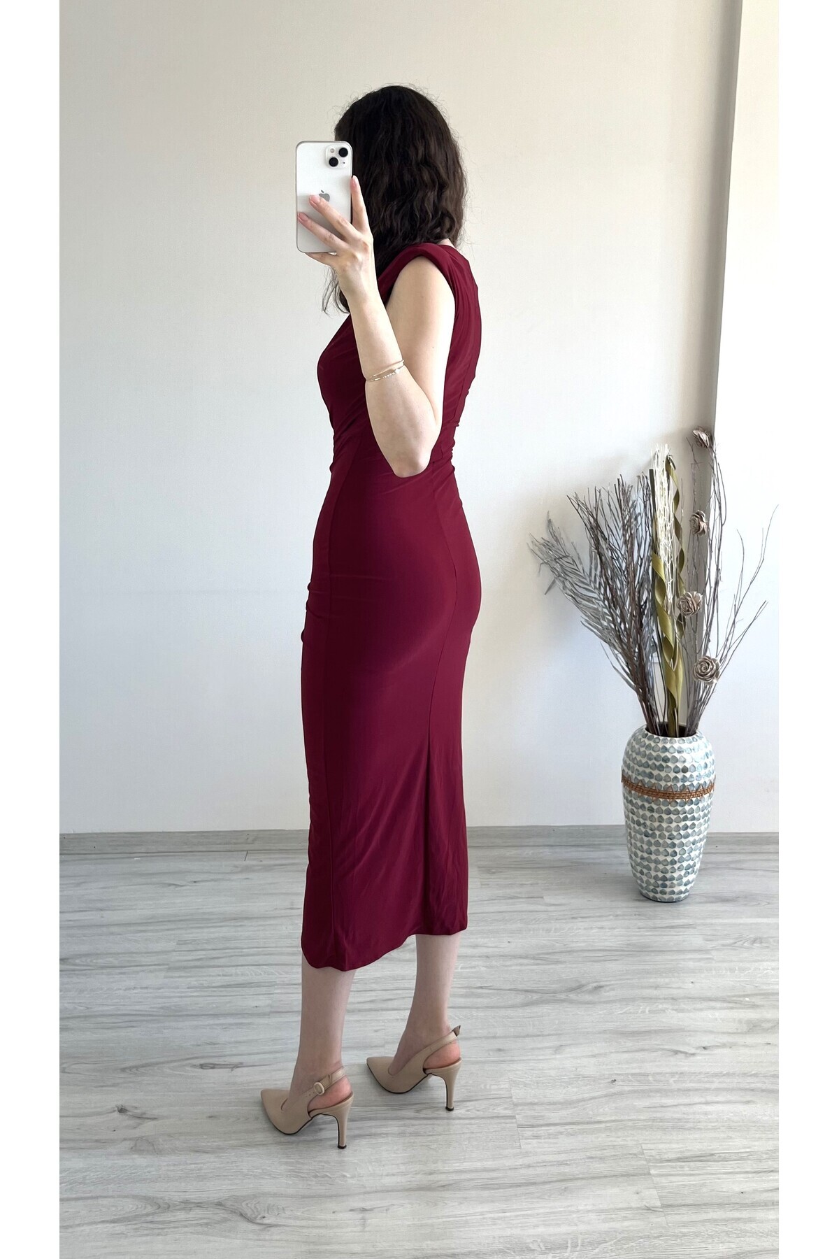KADIN OMUZ VATKALI YIRTMAÇLI ELBİSE KADIN OMUZ VATKALI YIRTMAÇLI ELBİSE ASP00000007 XL