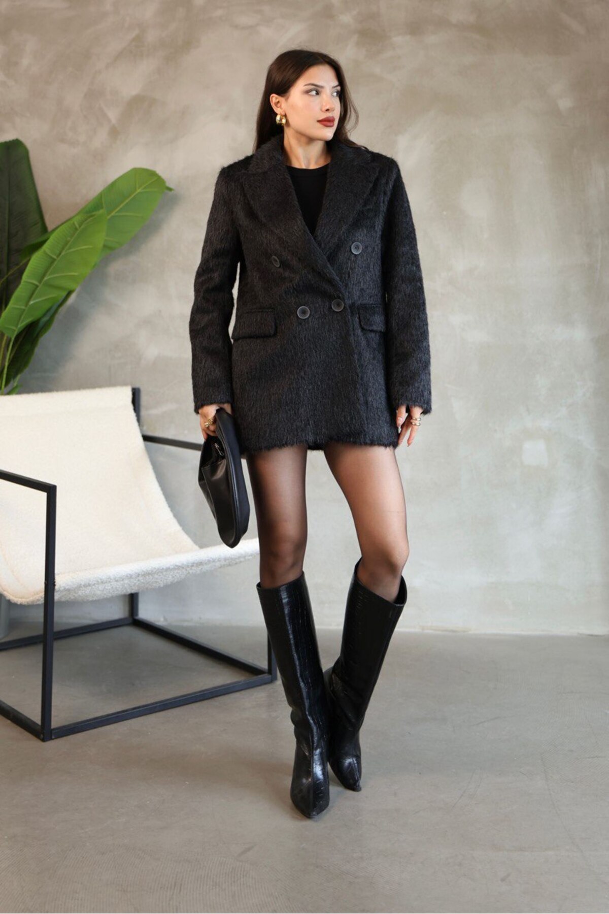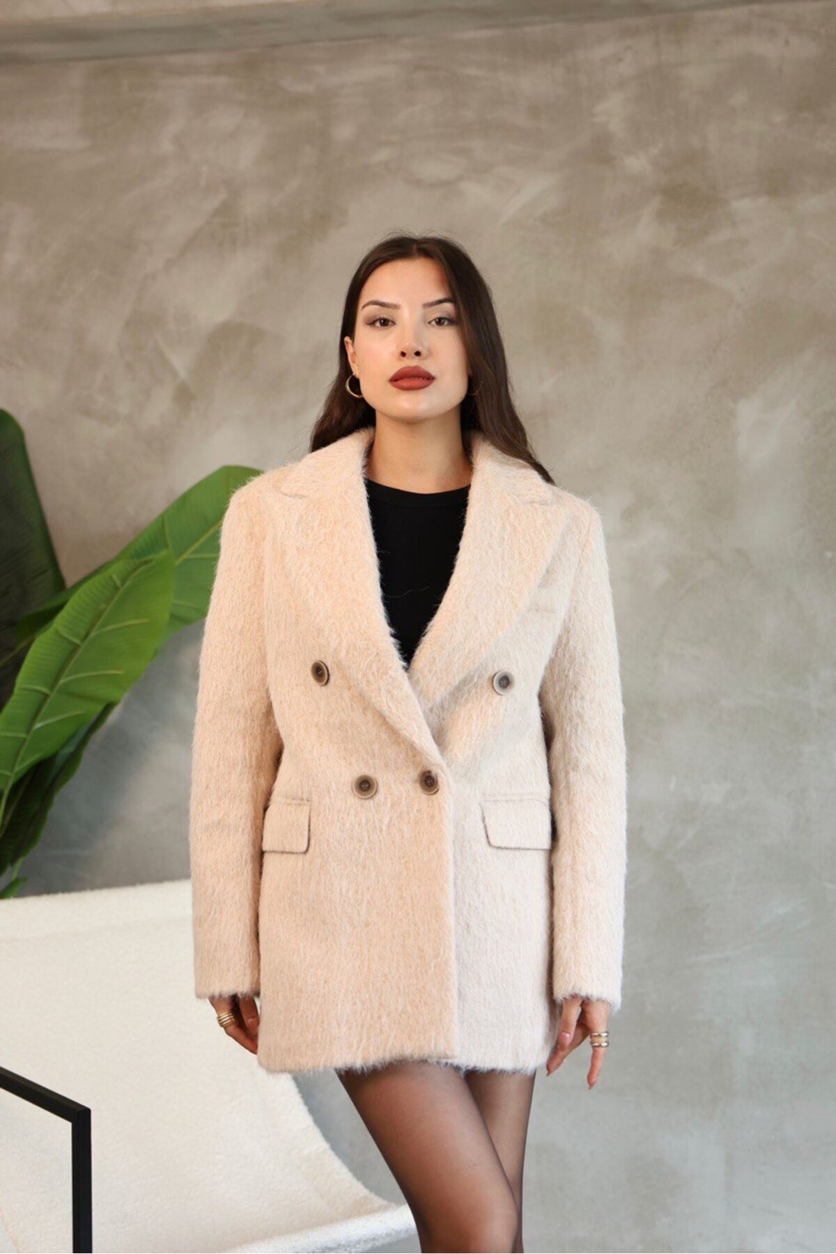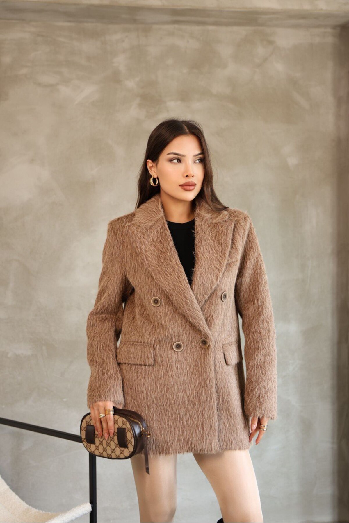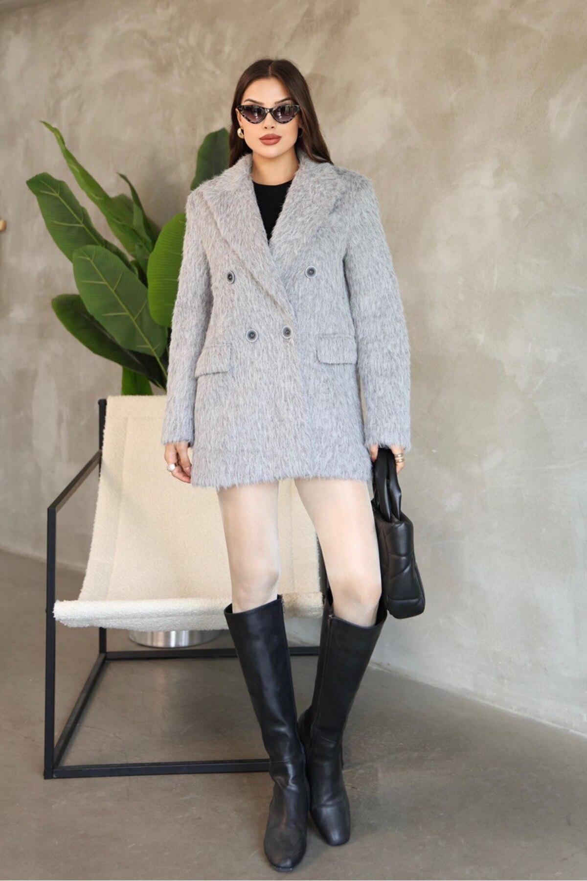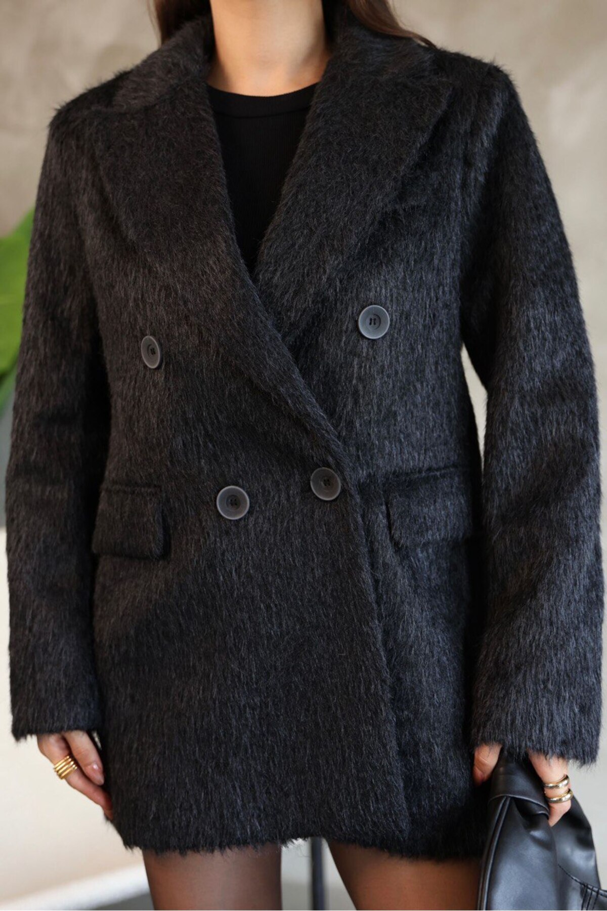 Çift Düğmeli Kısa Peluş Kaban Şık Oversize Kürk Görünümlü Ceket Çift Düğmeli Kısa Peluş Kaban Şık Oversize Kürk Görünümlü Ceket TY-514112548742125234 XL
