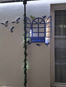 Mavi Pencere Temalı Çiçeklik Ahşap Mdf Lazer Kesim 3mm Duvar Süsü Mavi Pencere Temalı Çiçeklik Ahşap Mdf Lazer Kesim 3mm Duvar Süsü PENCERTESS2 72 x 60