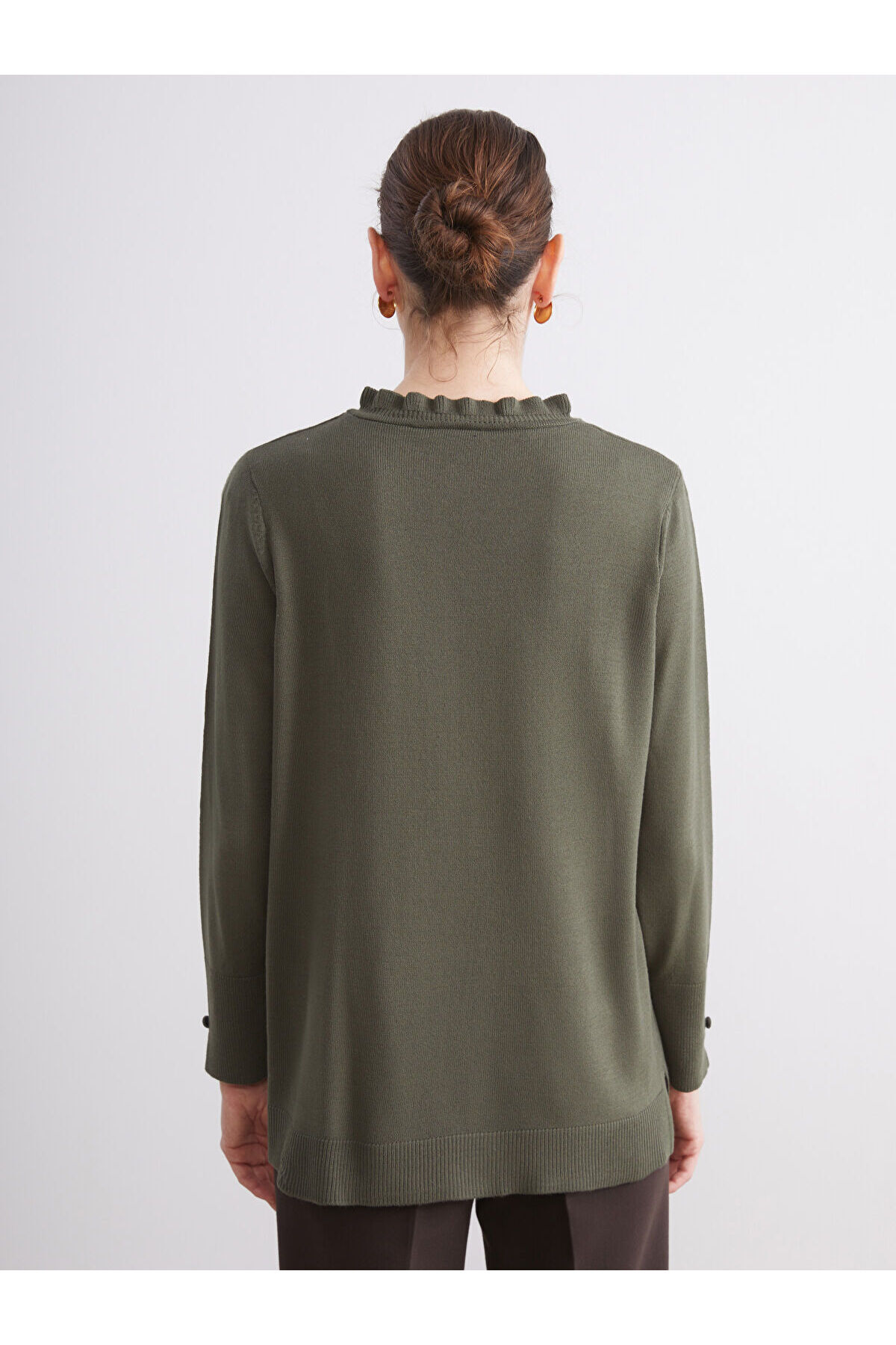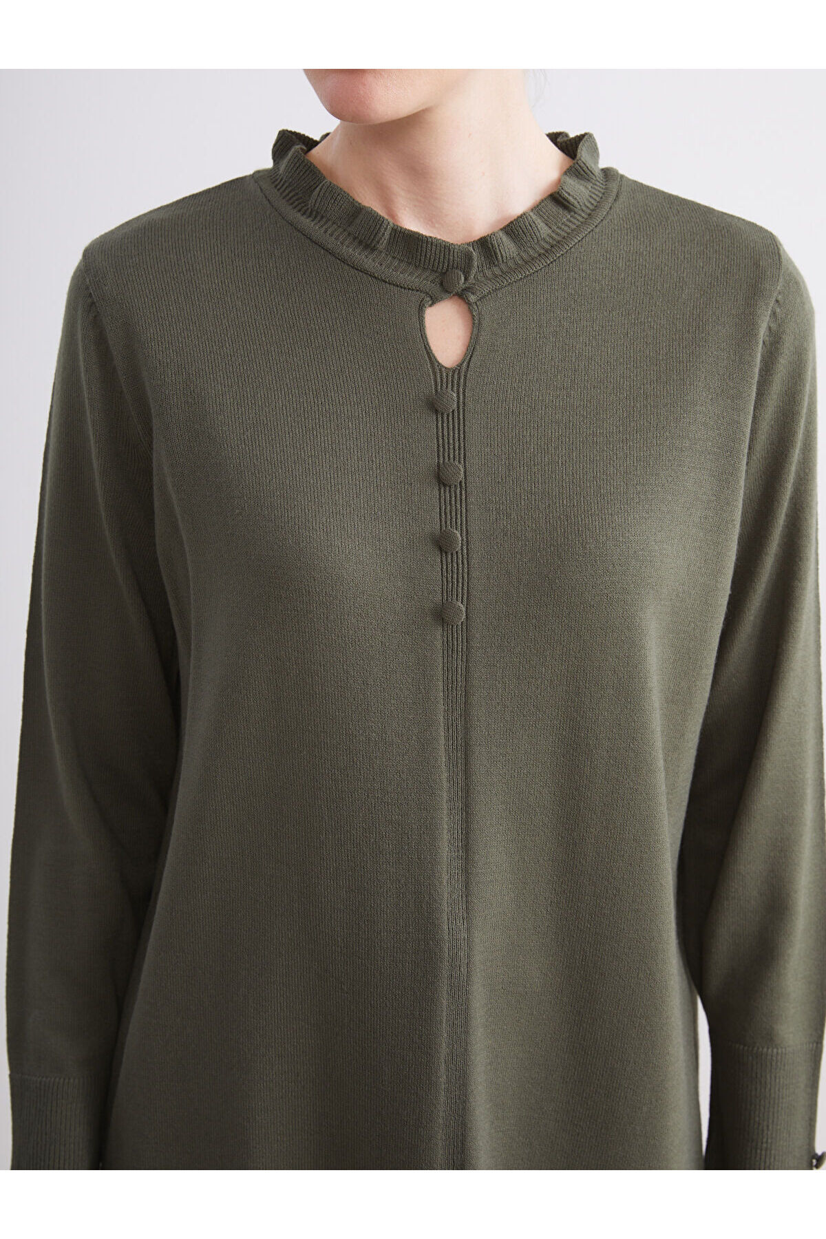 Haki Fırfırlı Dik Yaka Kadın Triko Kazak Haki Fırfırlı Dik Yaka Kadın Triko Kazak W5HS75Z8-R37 4XL