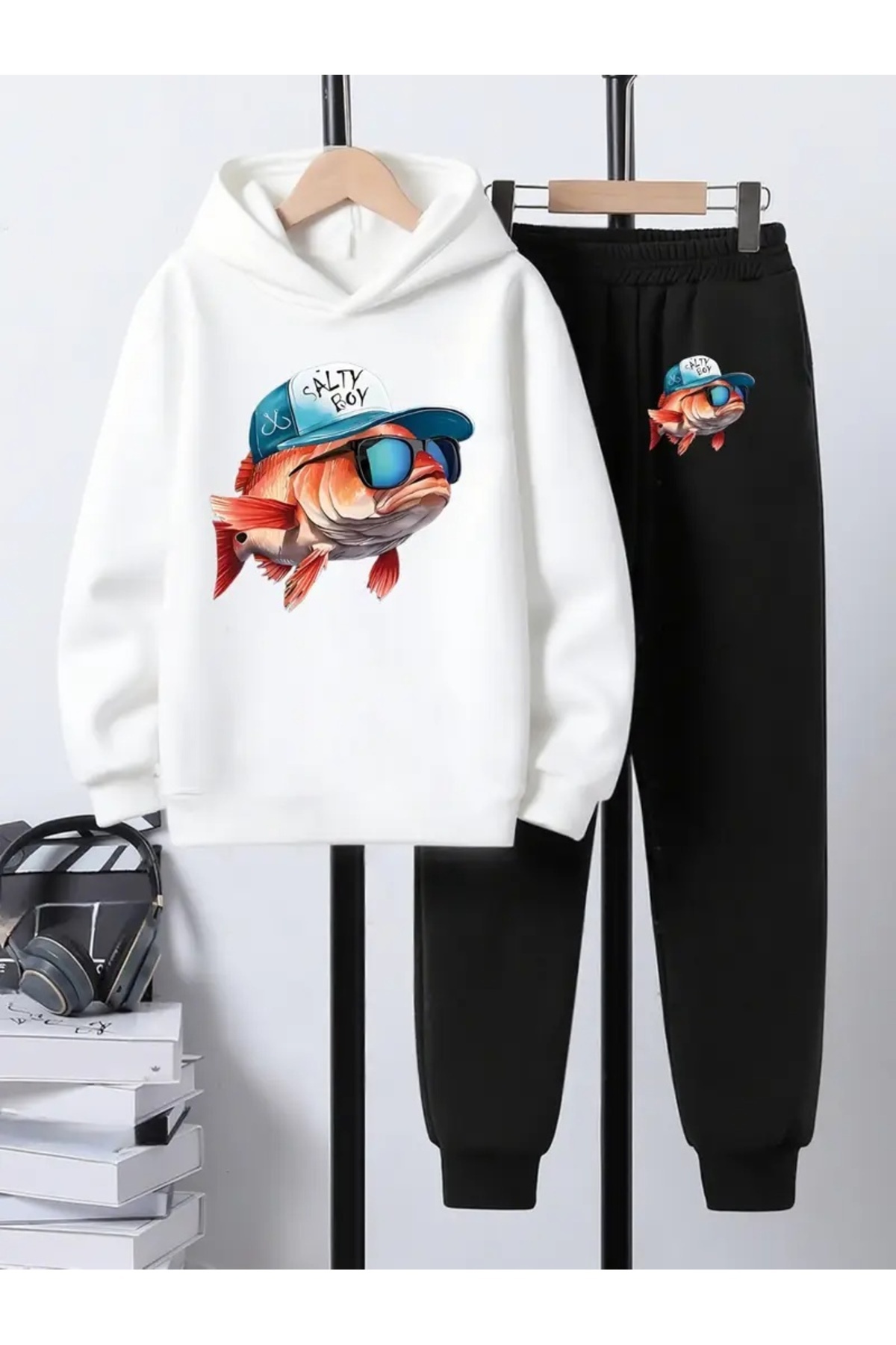 Çocuk Baskılı Kapüşonlu Sweatshirt ve Eşofman Takım 3 İplik Şardonlu Sonbahar/Kış için Çocuk Baskılı Kapüşonlu Sweatshirt ve Eşofman Takım 3 İplik Şardonlu Sonbahar/Kış için KA000017 13-14 Yaş